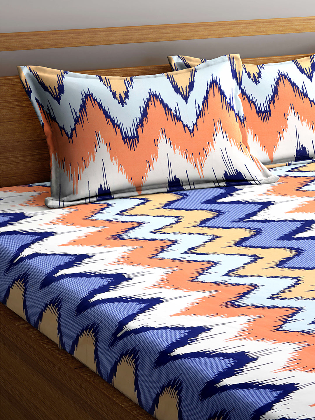 Arrabi Multi Abstract TC Cotton Blend King Size Bookfold Bedsheet with 2 Pillow Covers (250 X 220 cm)