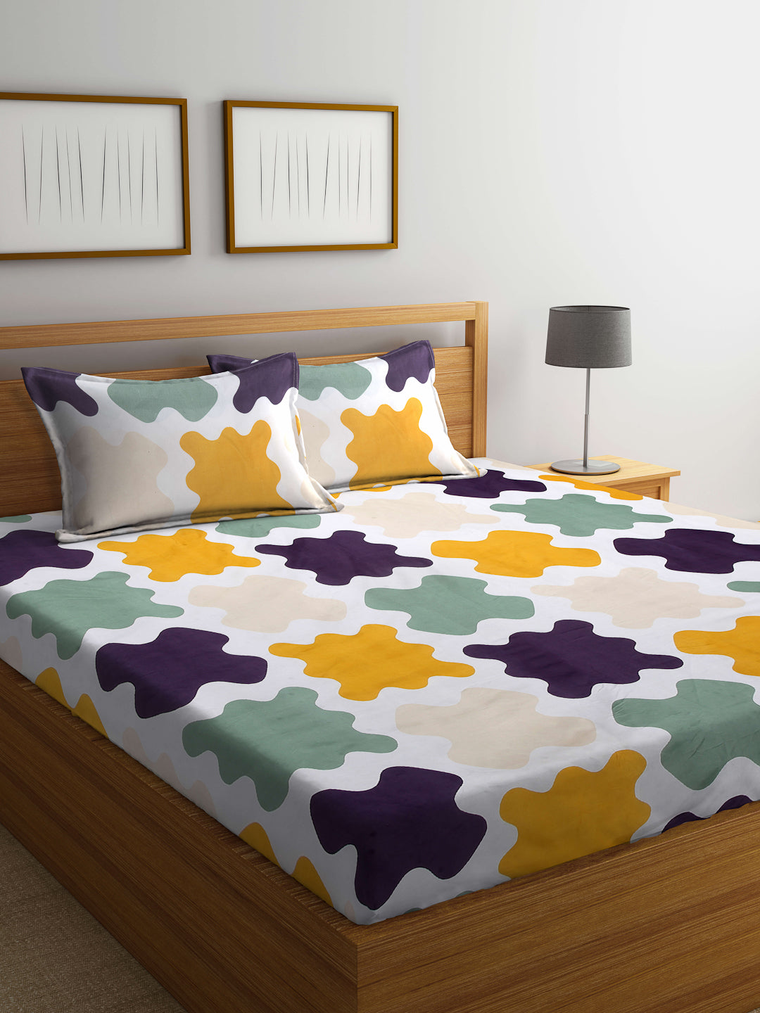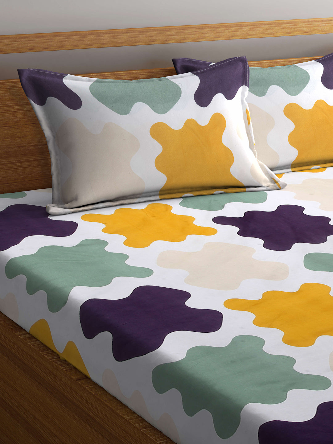 Arrabi Multi Graphic TC Cotton Blend Double Size Bedsheet with 2 Pillow Covers (250 x 215 cm)