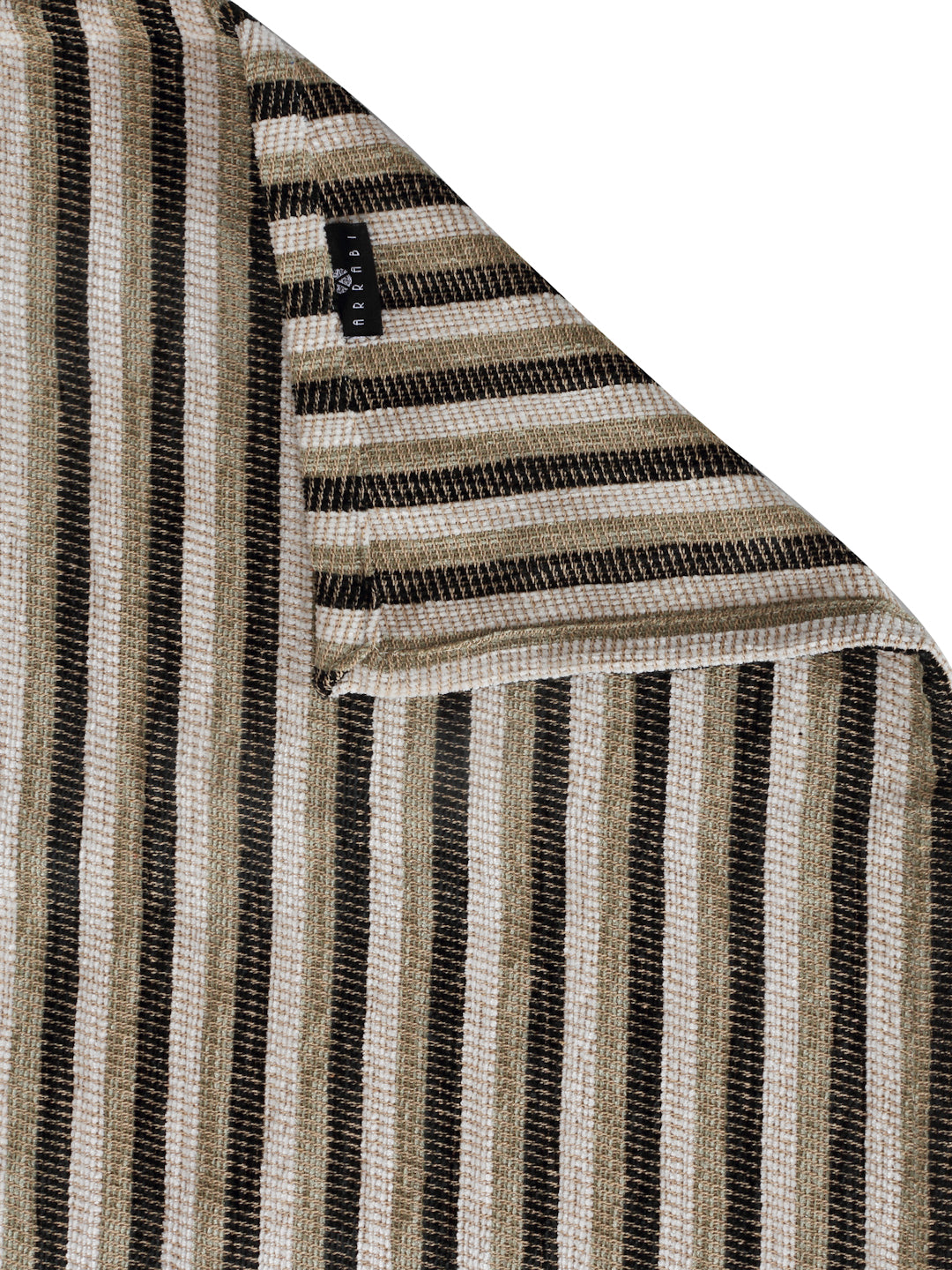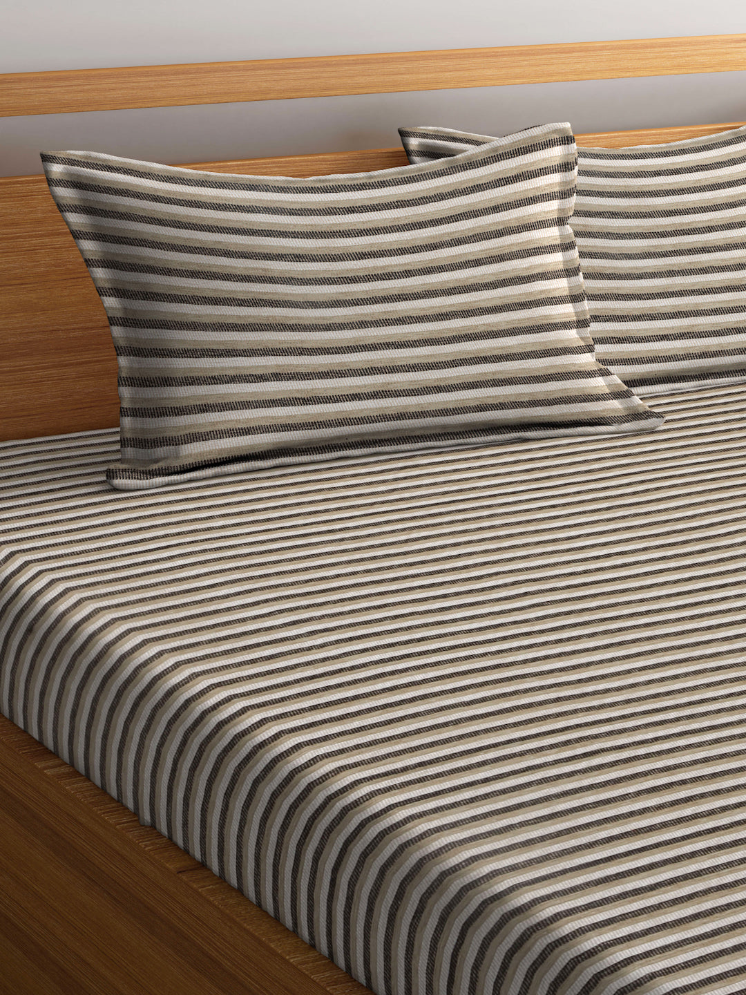 Arrabi Beige Stripes Handwoven Cotton King Size Bedsheet with 2 Pillow Covers (260 X 230 cm)