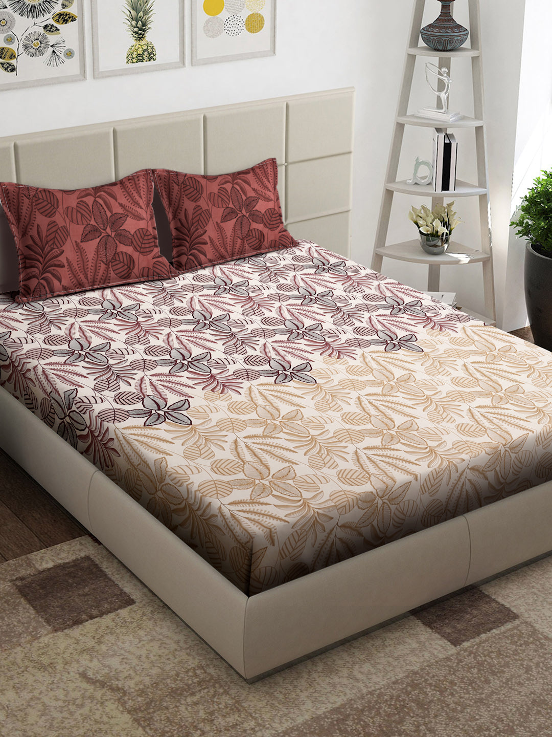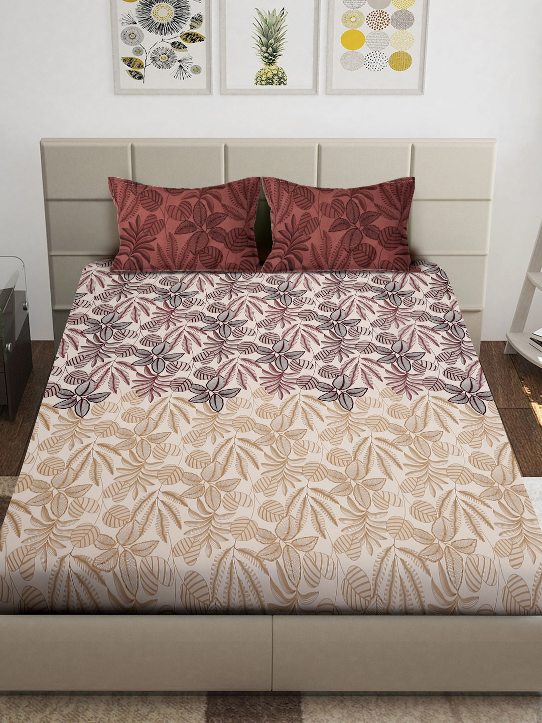 Arrabi Cream Floral TC Cotton Blend Super King Size Bedsheet with 2 Pillow Covers (270 x 260 cm)