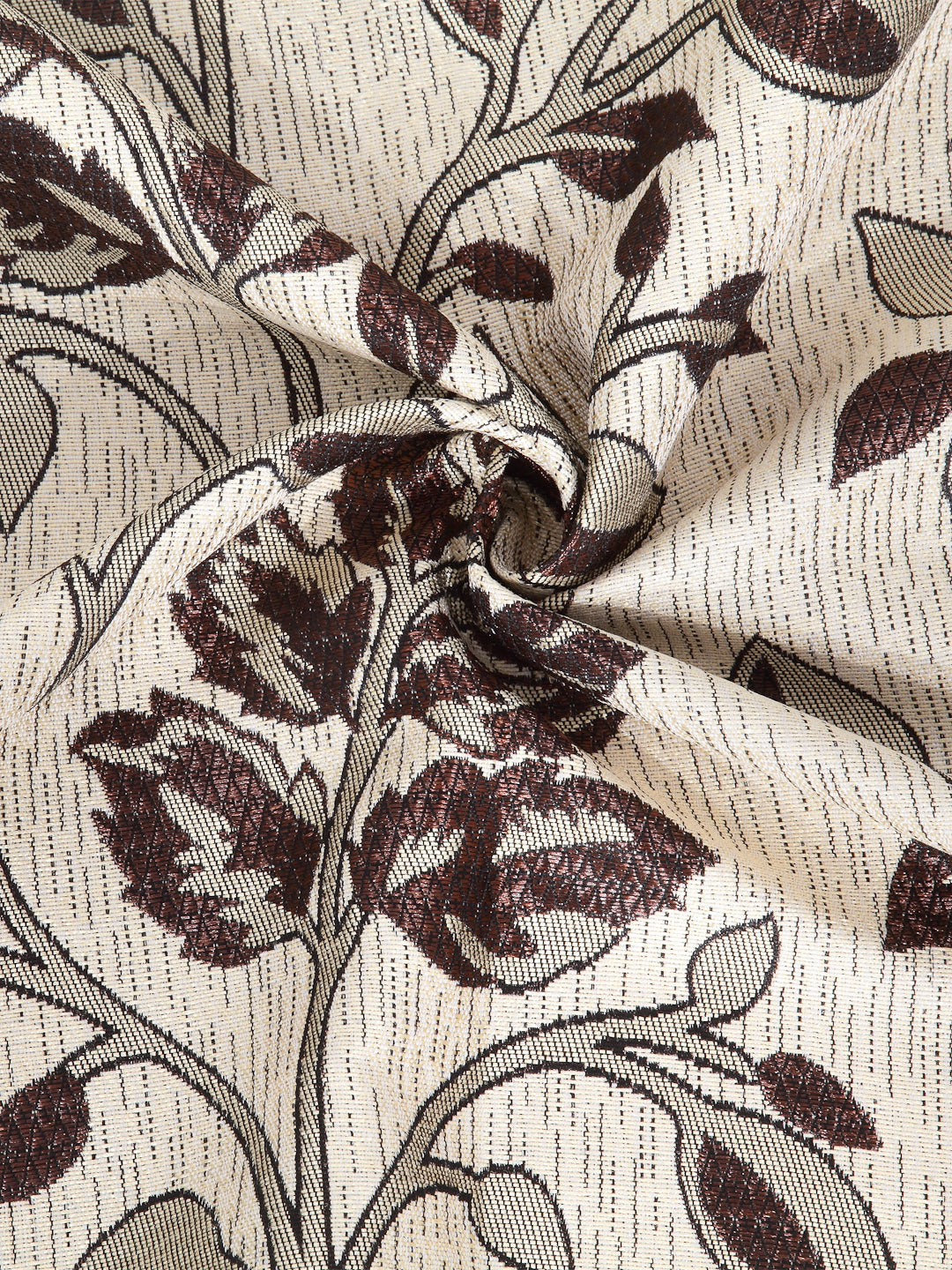 Arrabi Brown Leaf Print TC Cotton Blend Set of 2 Long Door Curtains (275 X 120 cm)