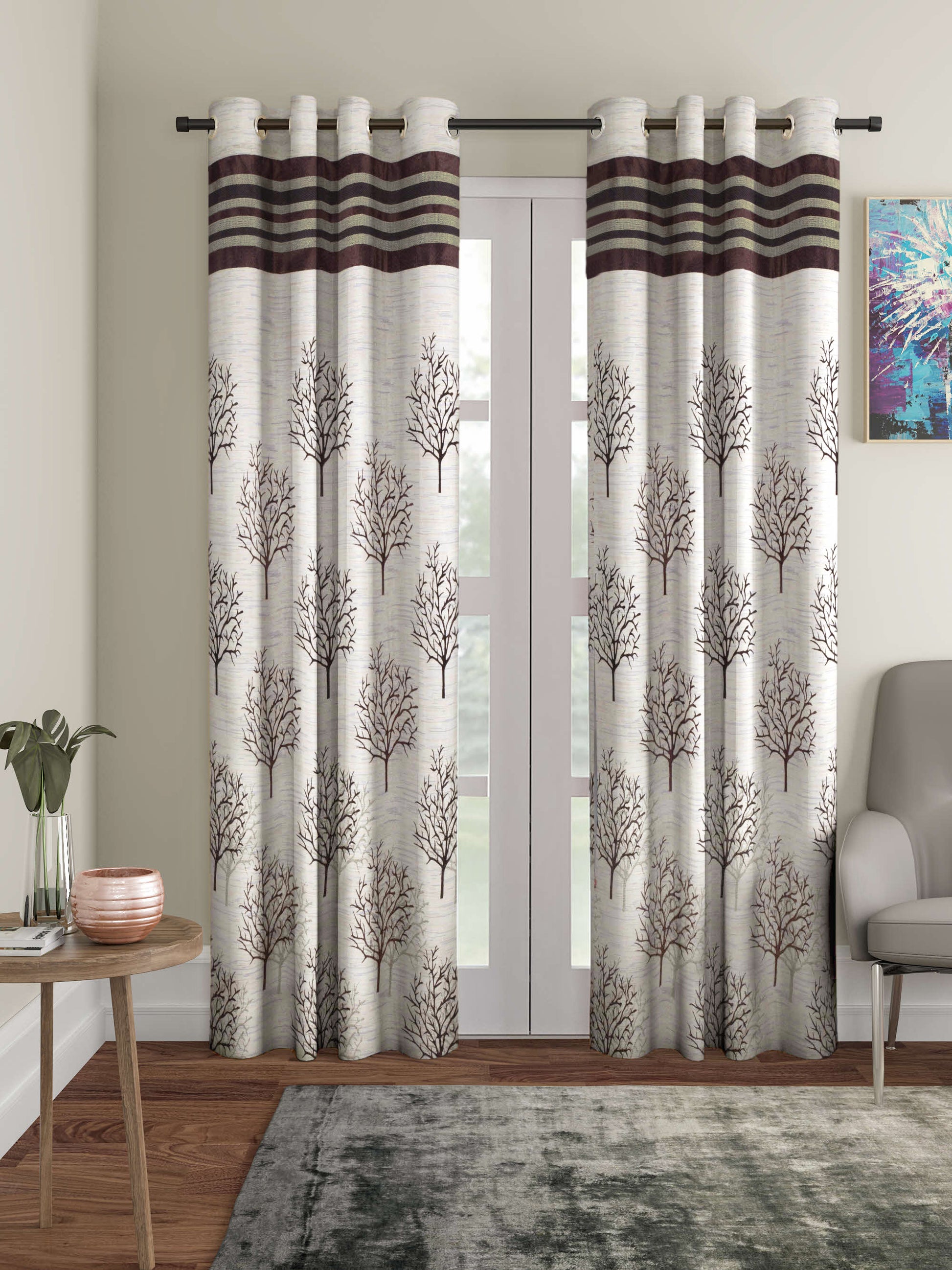 Arrabi Brown Tree Print TC Cotton Blend Set of 2 Long Door Curtains (275 X 120 cm)