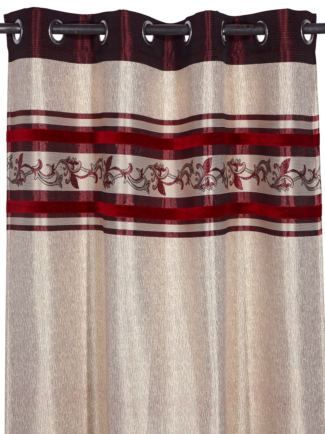 Arrabi Red Leaf Print TC Cotton Blend Set of 2 Long Door Curtains (275 X 120 cm)