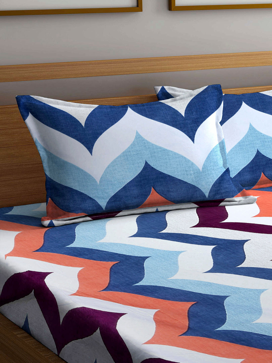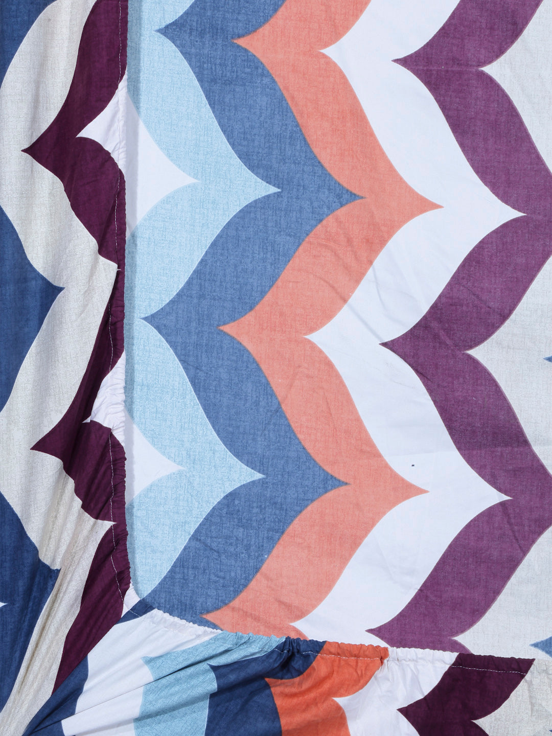 Arrabi Multi Indian TC Cotton Blend Super King Size Fitted Bedsheet with 2 Pillow Covers (270 x 260 cm)