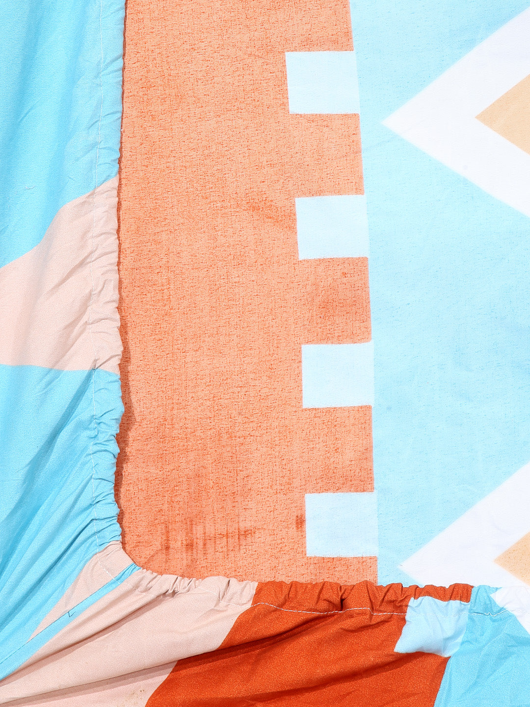 Arrabi Blue Geometric TC Cotton Blend King Size Fitted Bedsheet with 2 Pillow Covers (250 X 215 Cm )