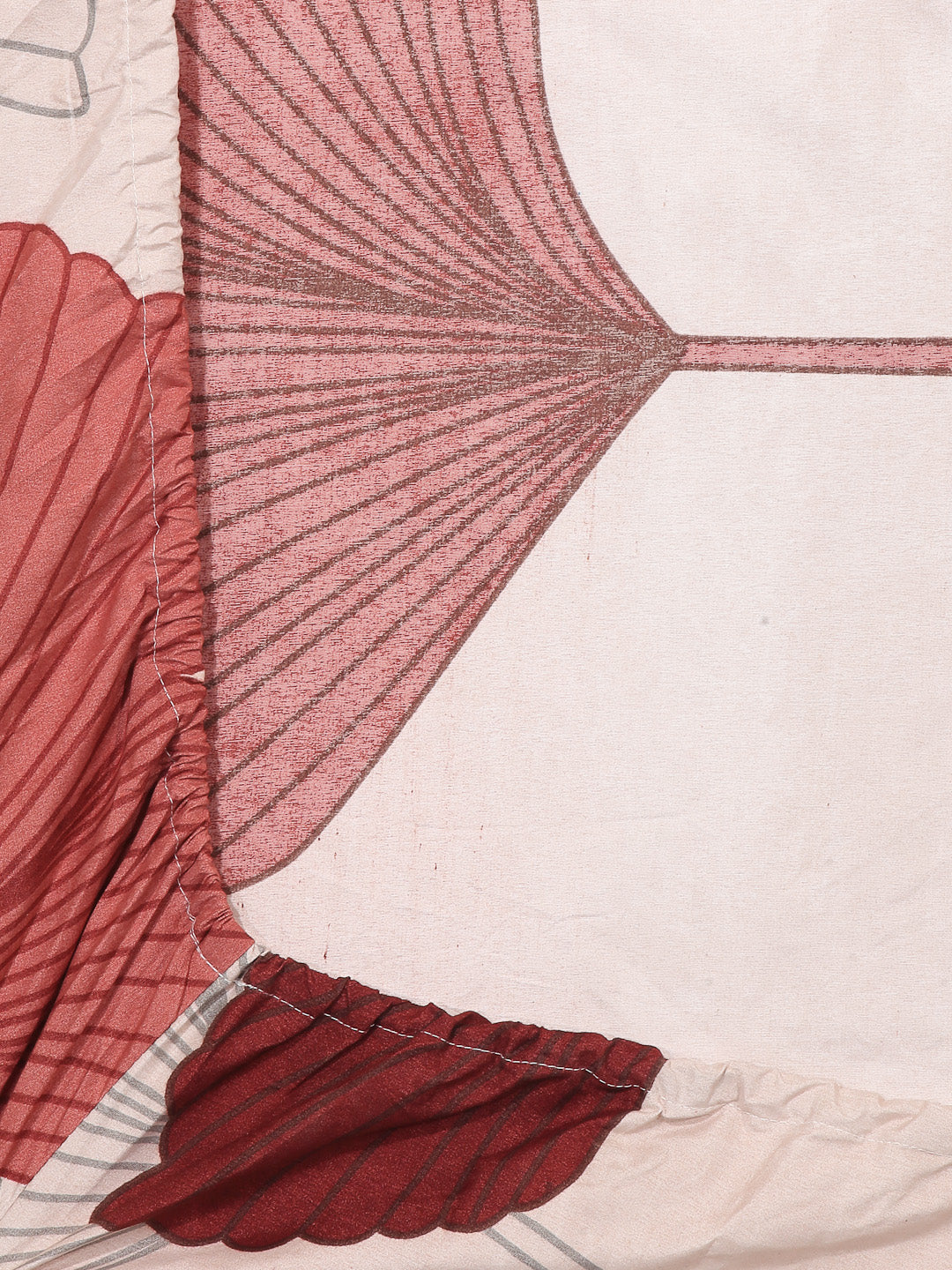 Arrabi Brown Floral TC Cotton Blend King Size Fitted Bedsheet with 2 Pillow Covers (250 X 215 Cm )