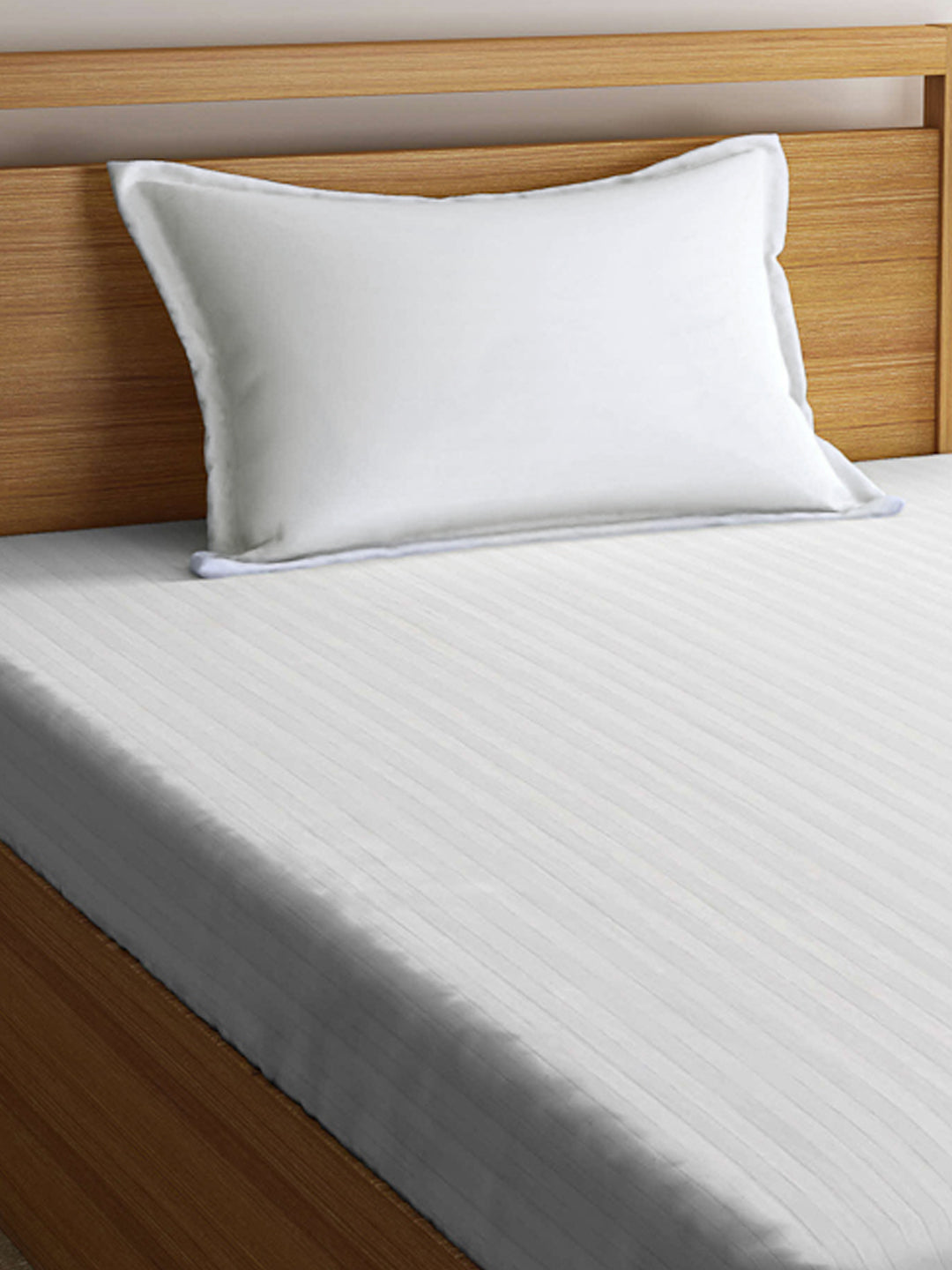 Arrabi White Stripes TC Cotton Blend Single Size Fitted Bedsheet with 1 Pillow Cover (220 X 150 cm)