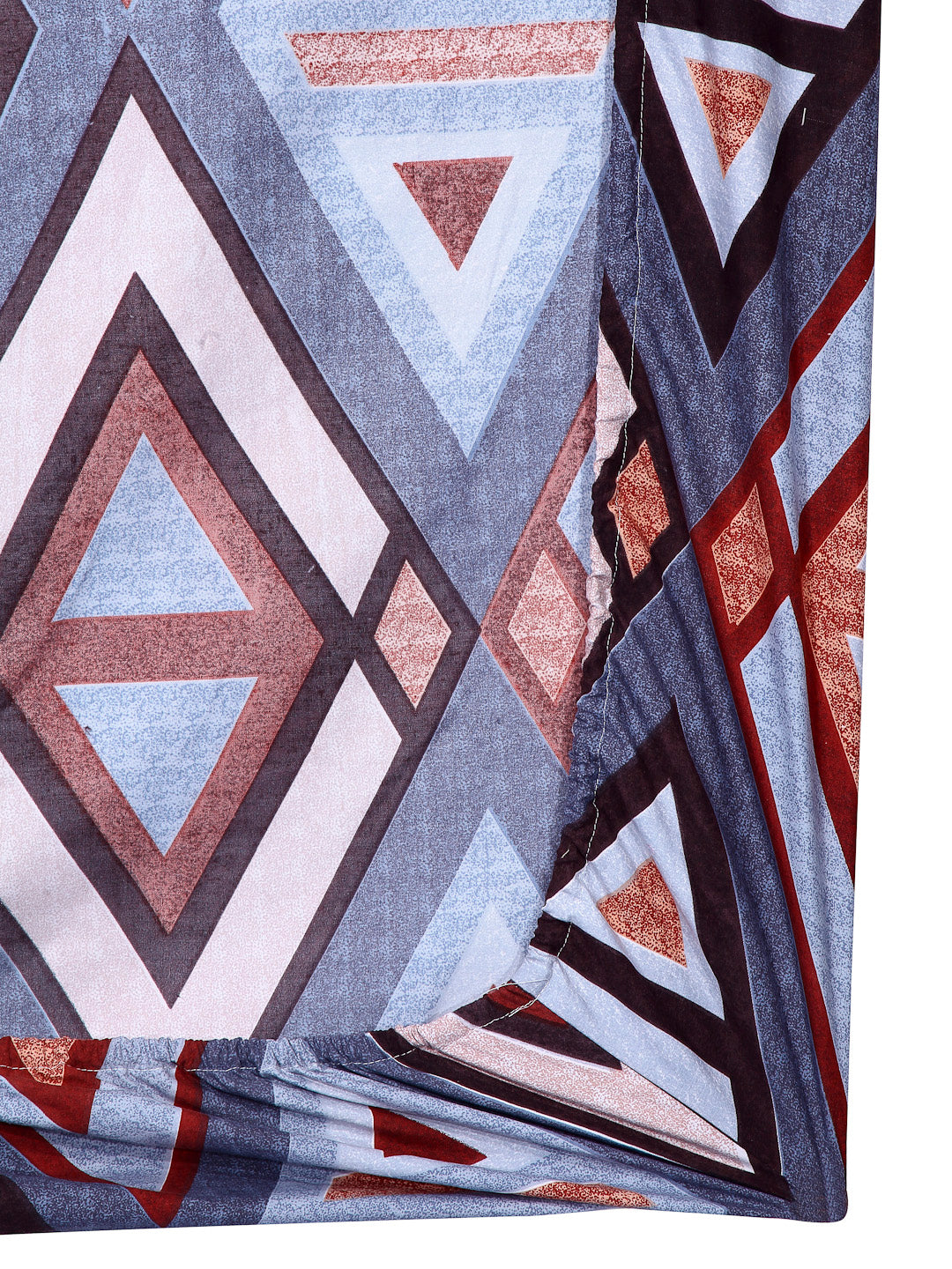 Arrabi Multi Geometric TC Cotton Blend Single Size Fitted Bedsheet with 1 Pillow Cover (220 X 150 cm)