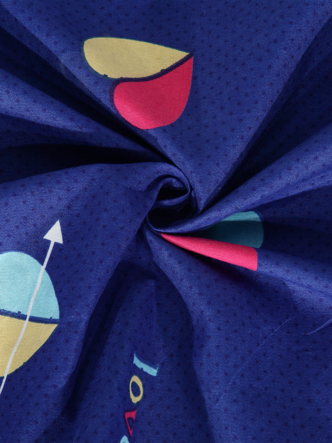 Arrabi Blue Graphic TC Cotton Blend Single Size Fitted Bedsheet with 1 Pillow Cover (220 X 150 cm)