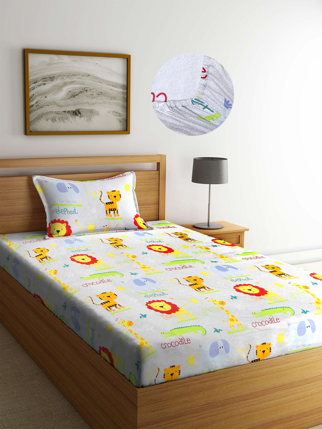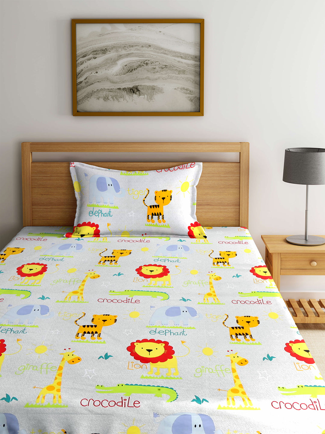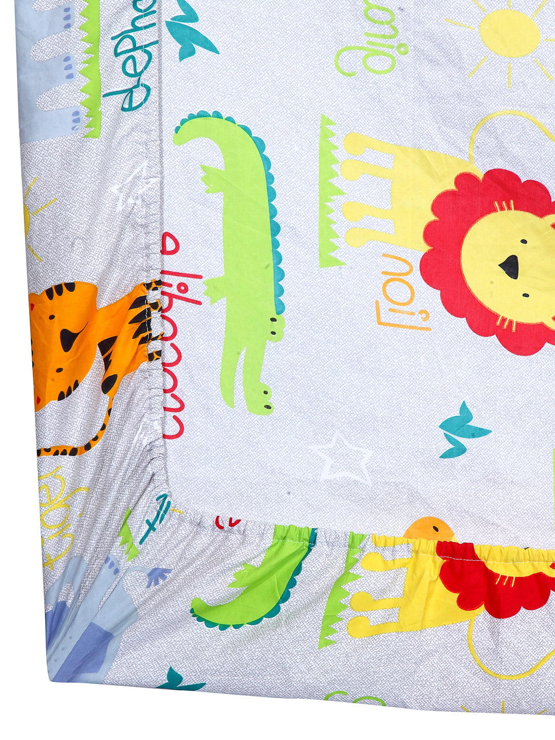 Arrabi Multi Cartoon TC Cotton Blend Single Size Fitted Bedsheet with 1 Pillow Cover (220 X 150 cm)