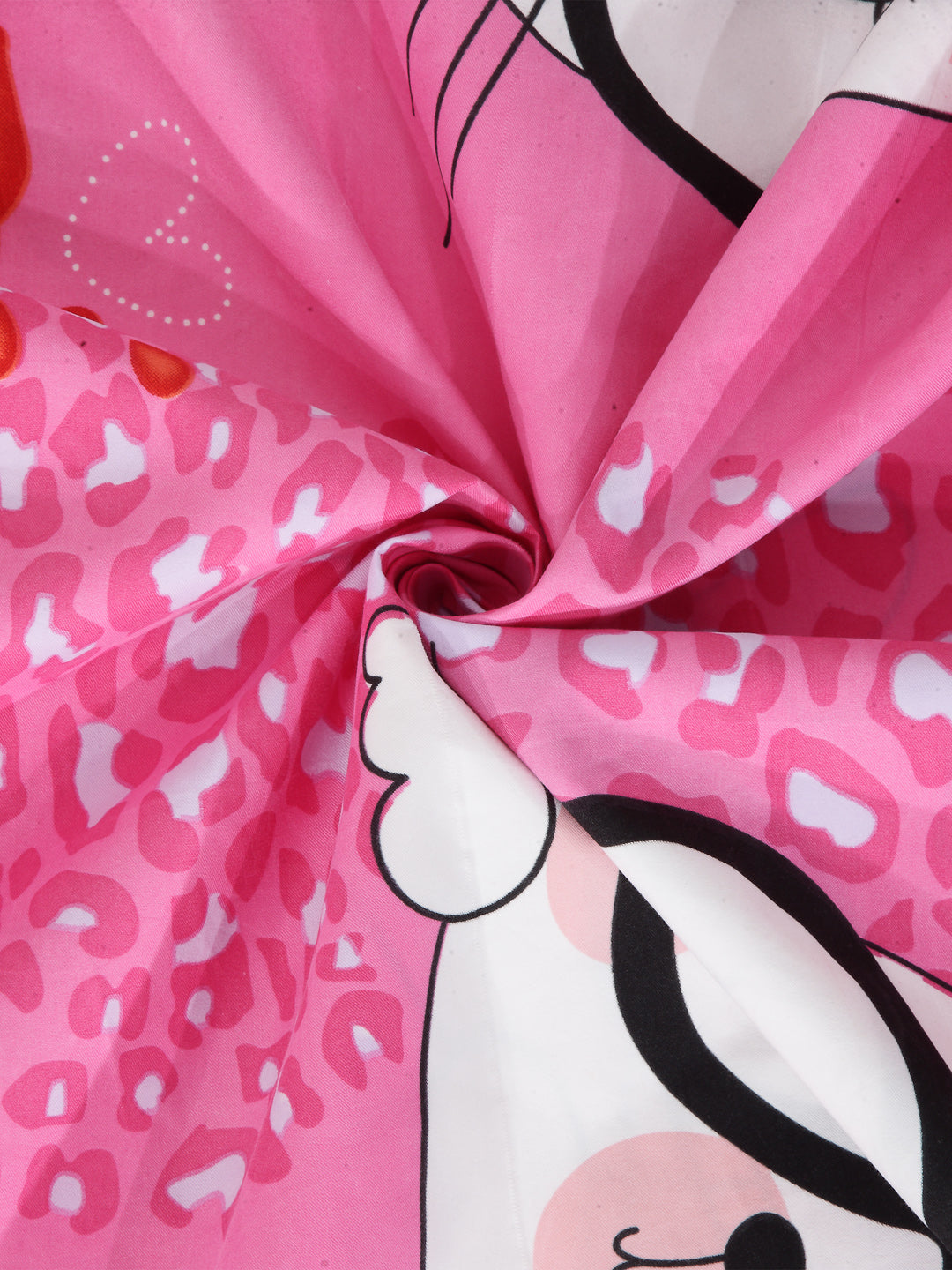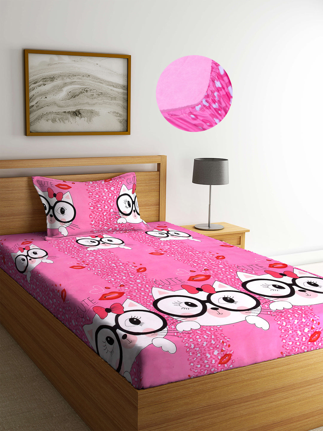 Arrabi Pink Graphic TC Cotton Blend Single Size Fitted Bedsheet with 1 Pillow Cover (220 X 150 cm)