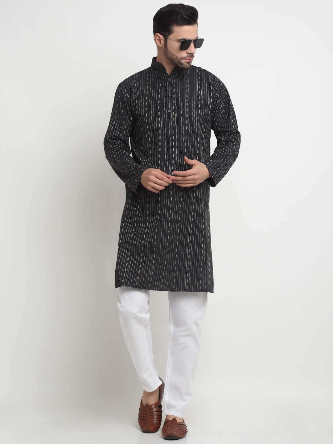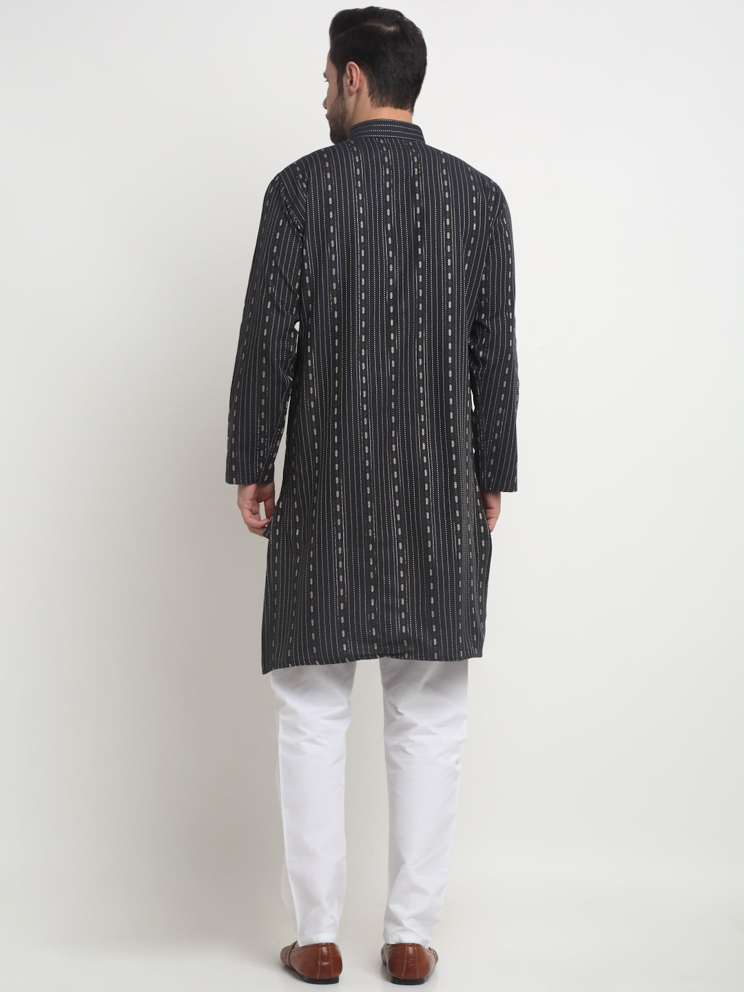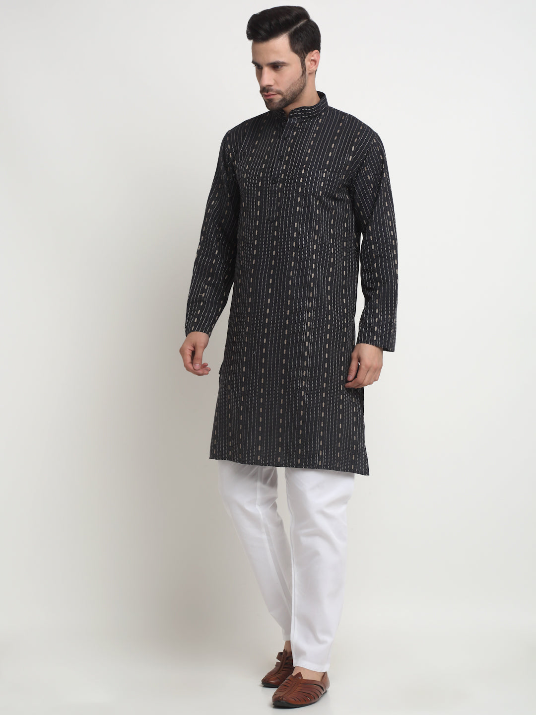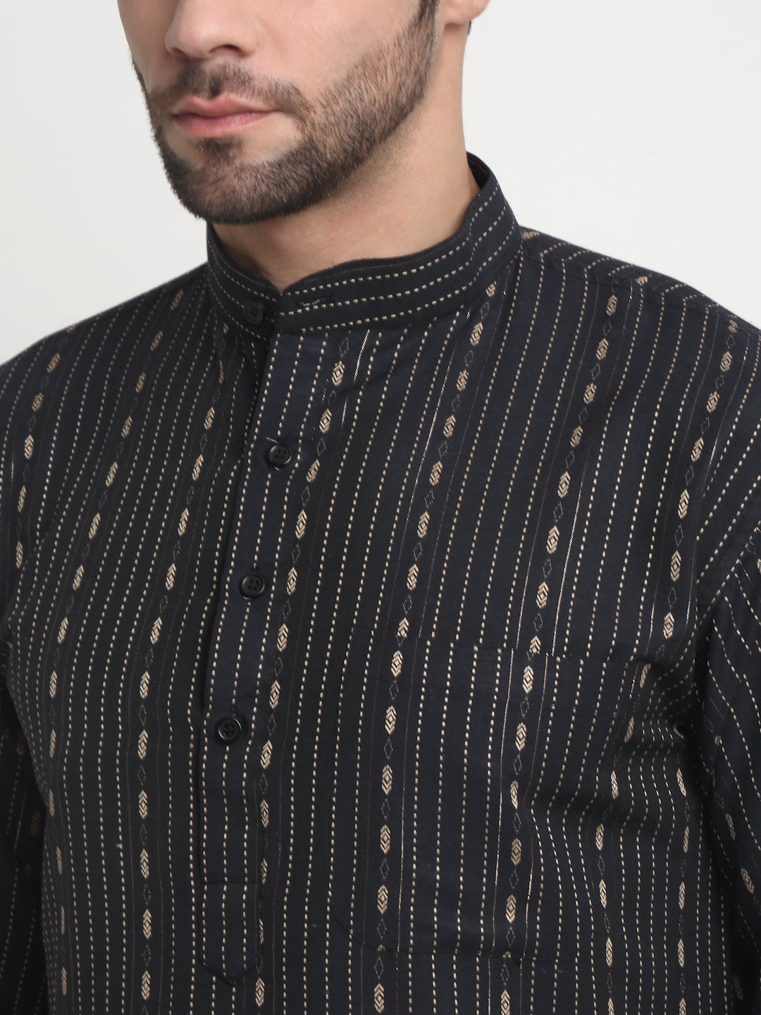 Arrabi Men Black Pure Cotton Geometric Kurta Pyjama Set with Pockets