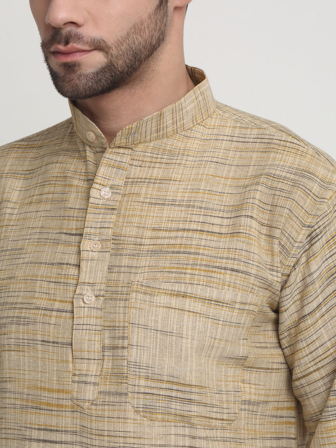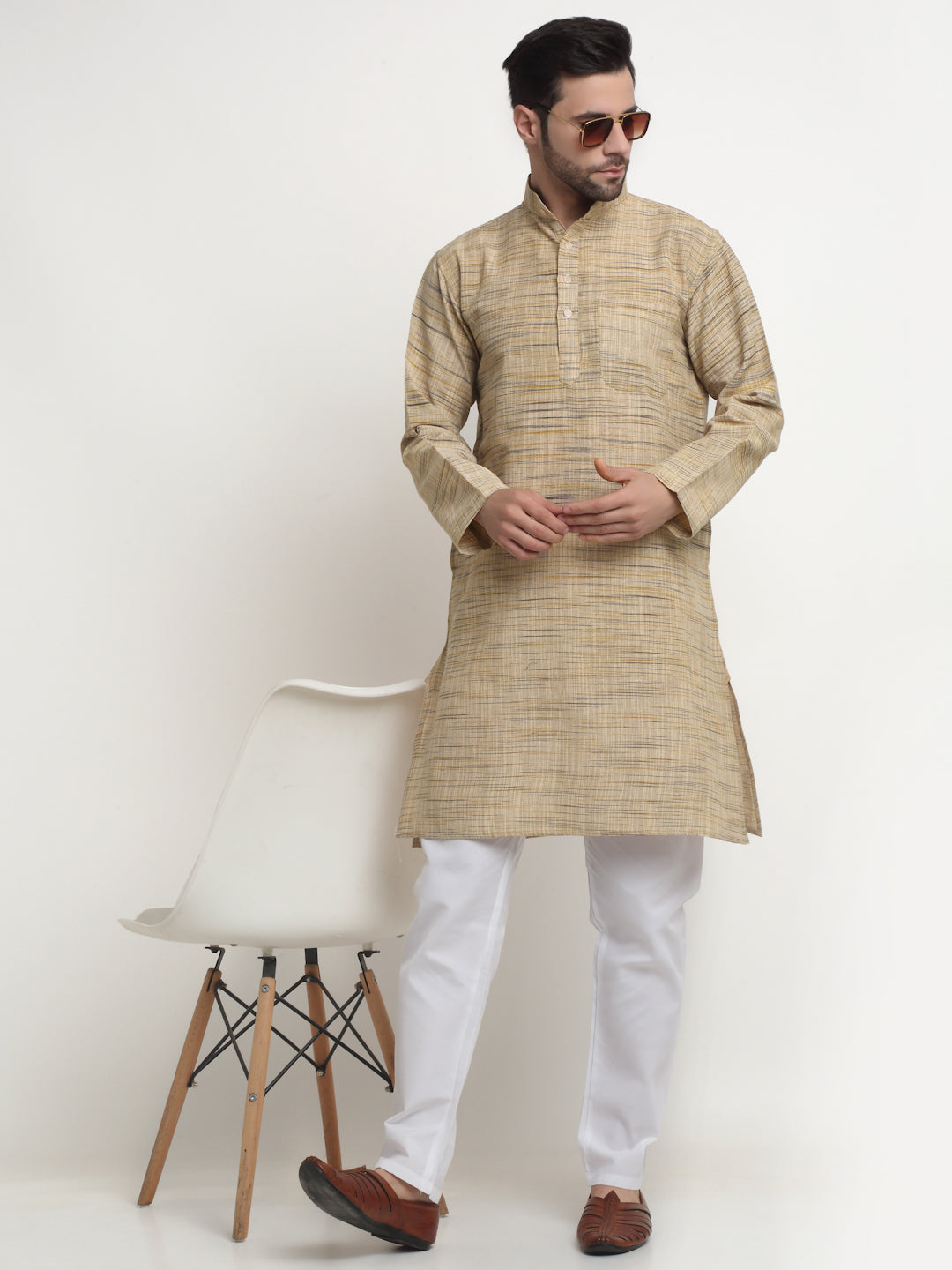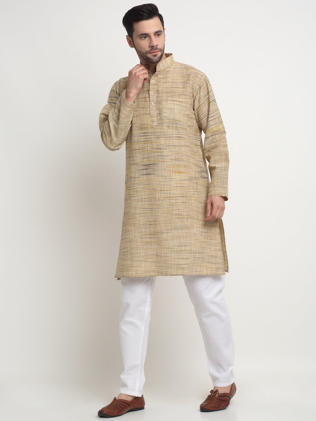 Set Content : Arrabi Men Indian Fashion Cream Pure Cotton Solid Straight Kurta