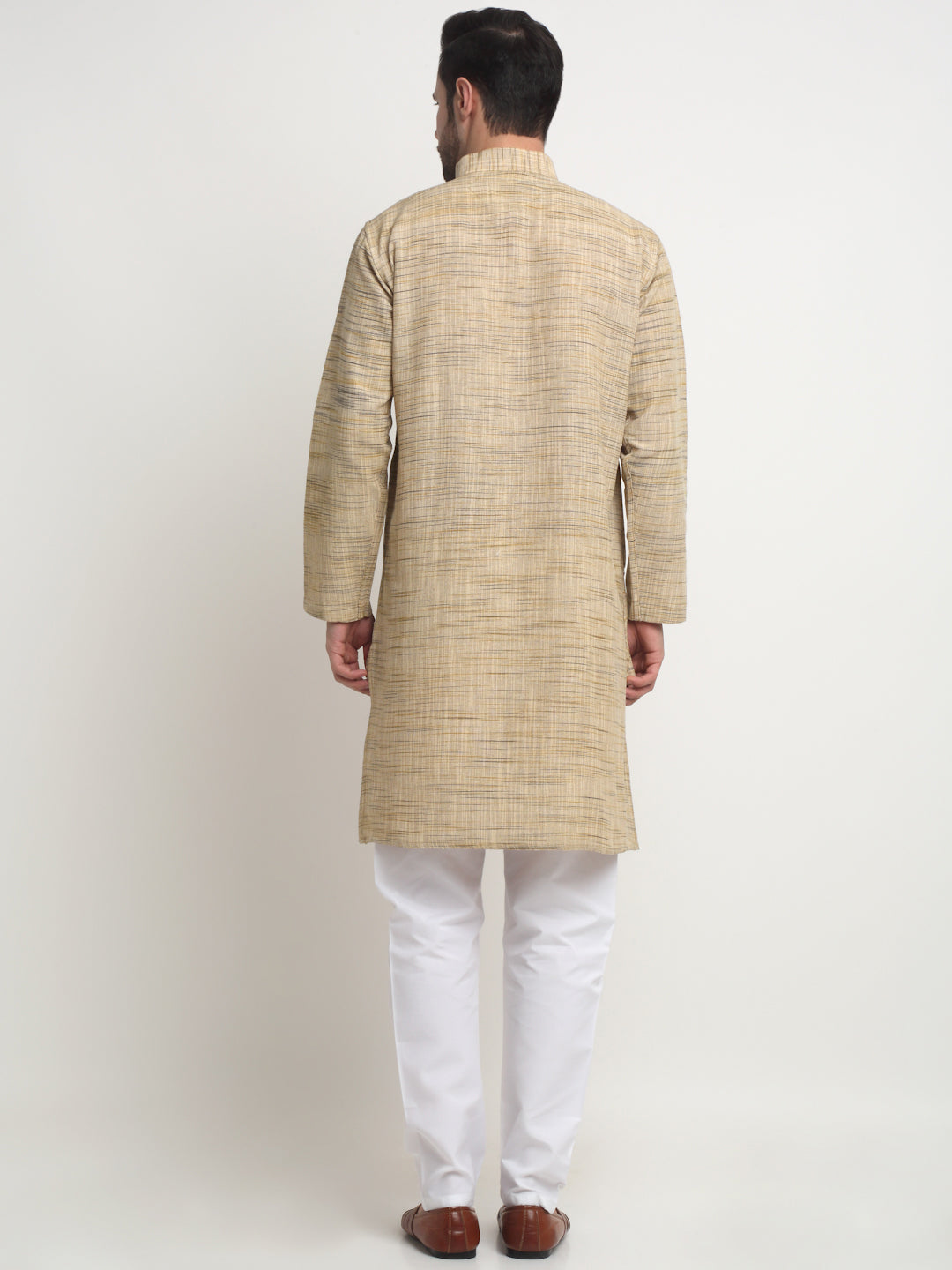Arrabi Men Indian Fashion Cream Pure Cotton Solid Straight Kurta