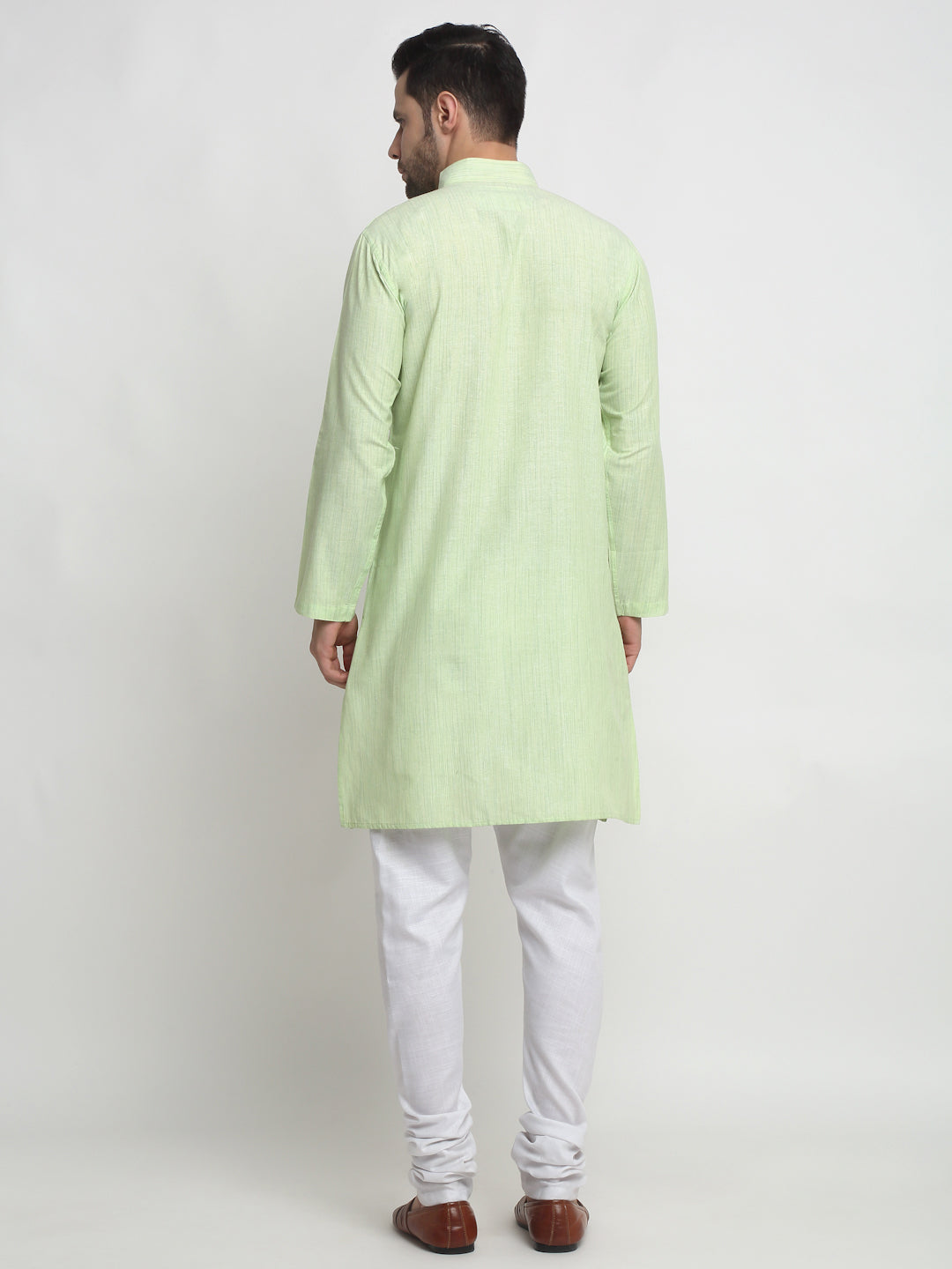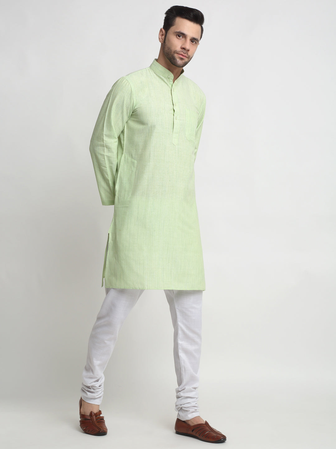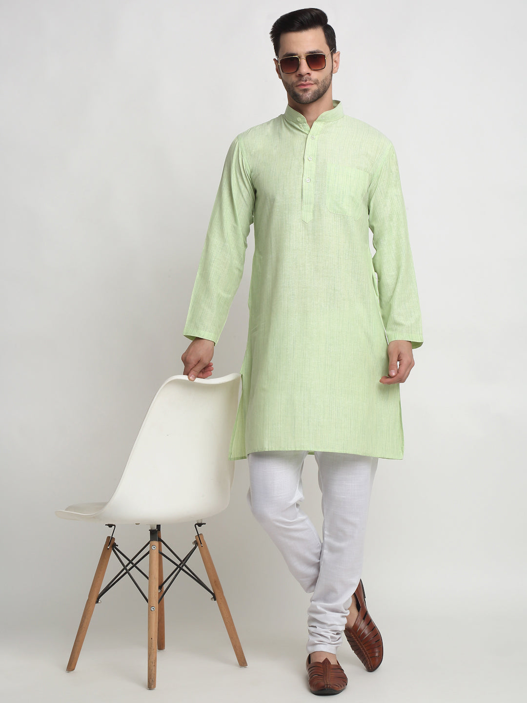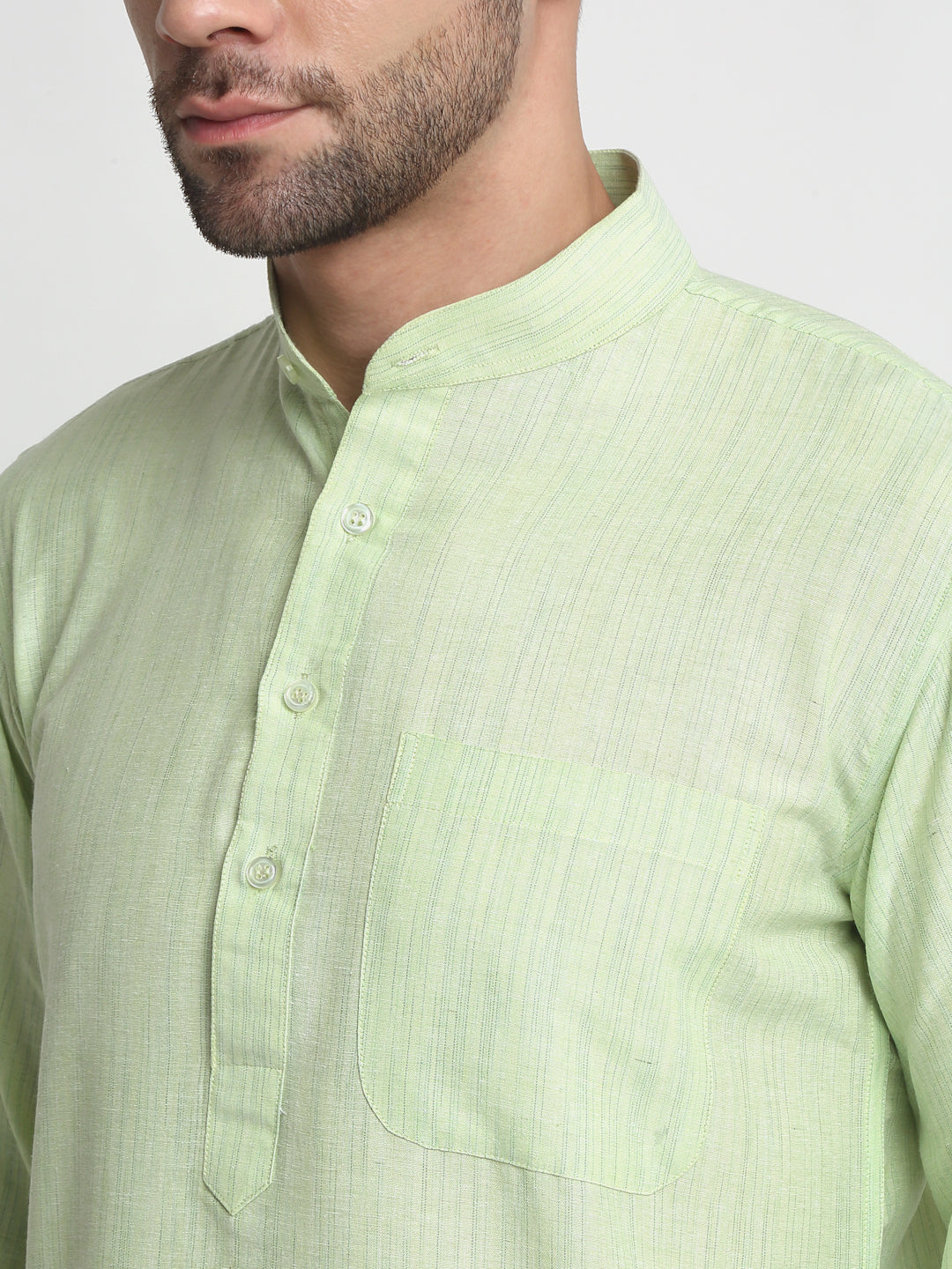 Arrabi Men Indian Fashion Green Pure Cotton Solid Straight Kurta