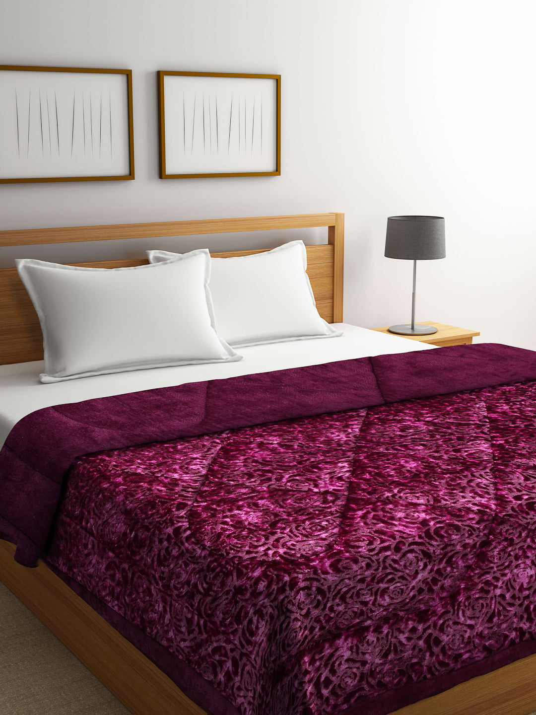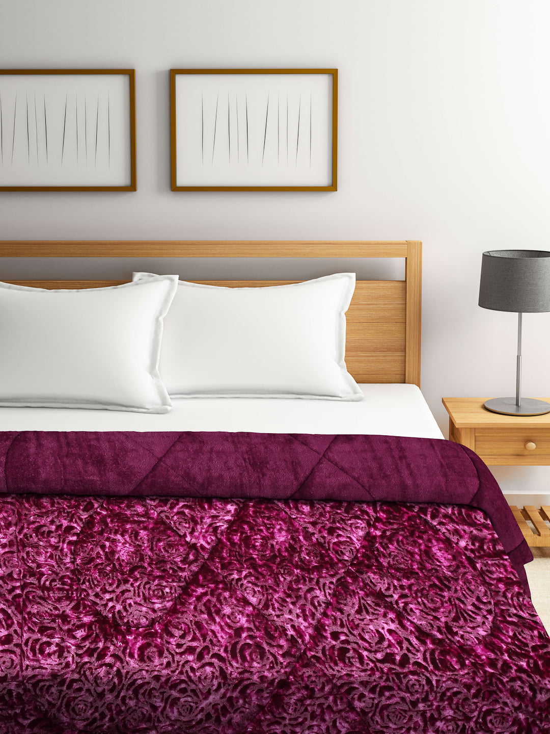 Arrabi Purple Floral Polyester King Size 950 GSM Double Quilt (240 X 210 cm)