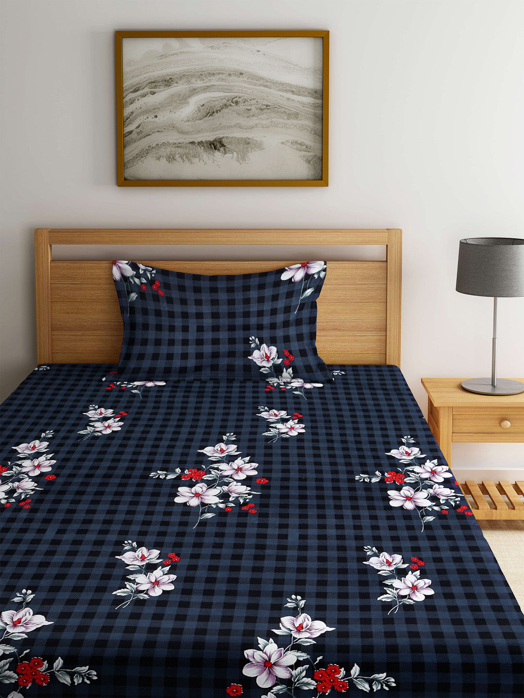 Arrabi Multi Floral TC Polycotton Single Size Bedsheet with 1 Pillow Cover (225 x 150 cm)