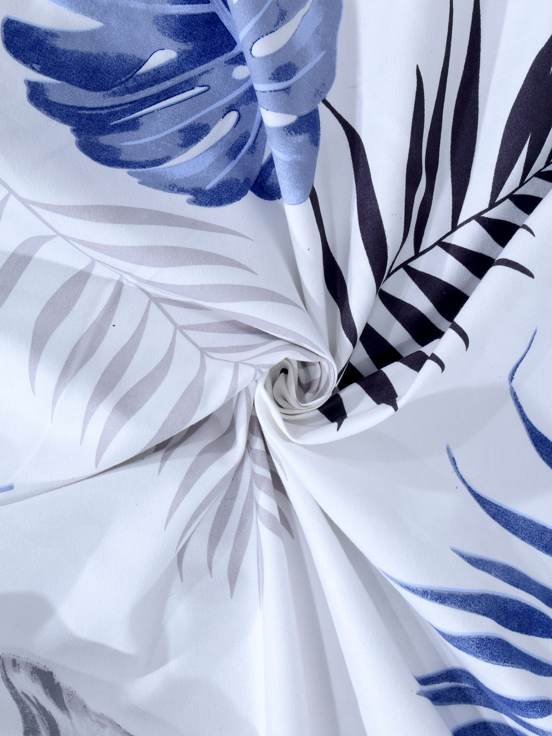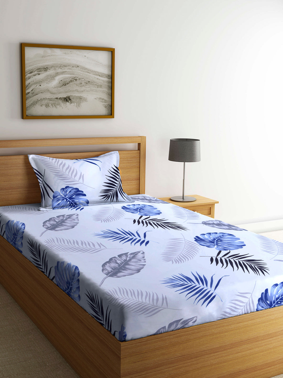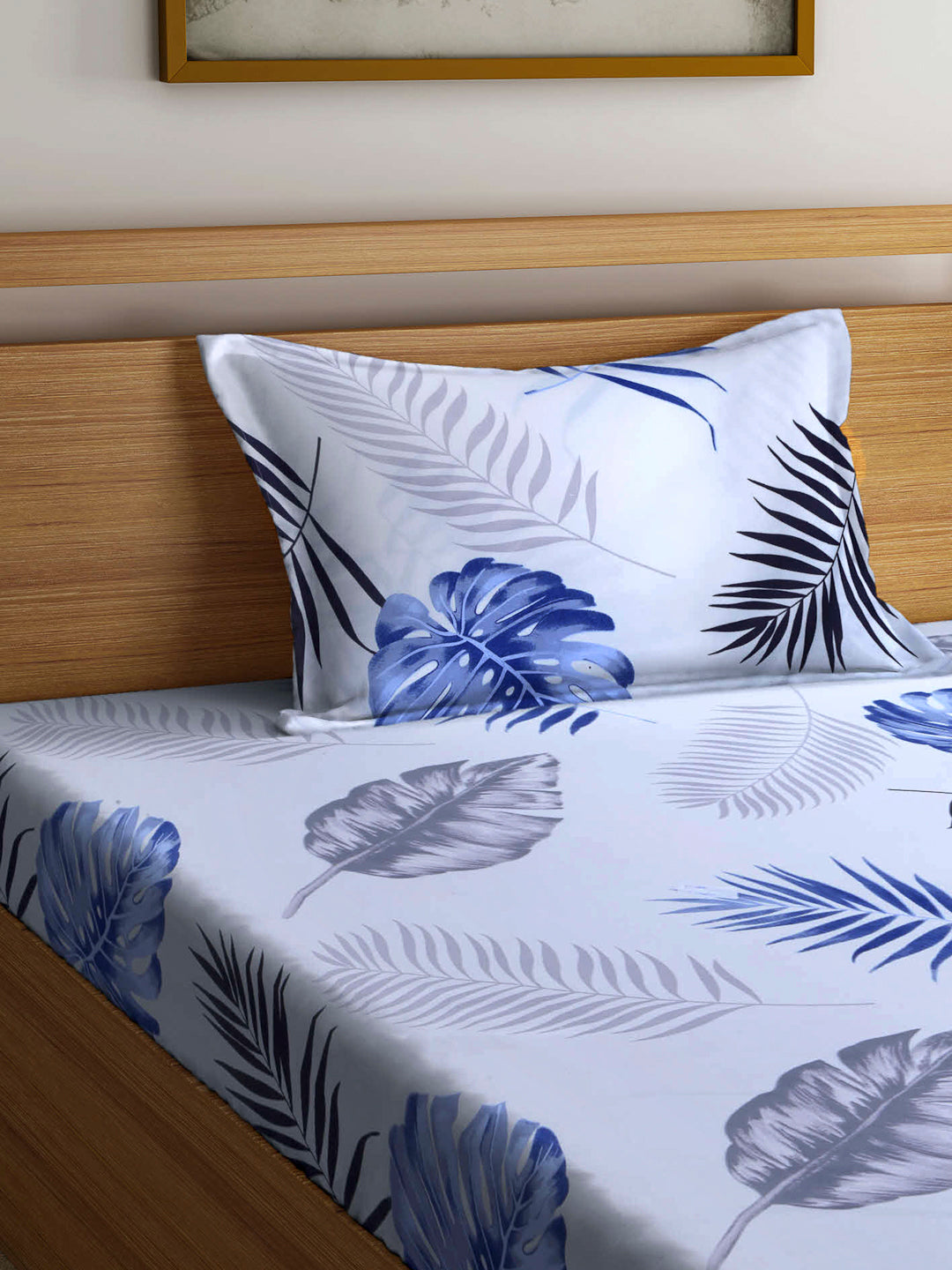 Arrabi White Leaf TC Cotton Blend Single Size Bedsheet with 1 Pillow Cover (220 x 150 cm)