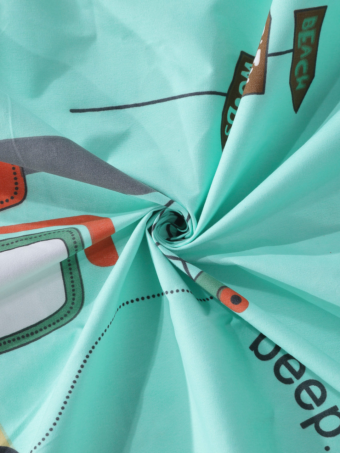 Arrabi Green Cartoon TC Cotton Blend Single Size Bedsheet with 1 Pillow Cover (220 X 150 cm)