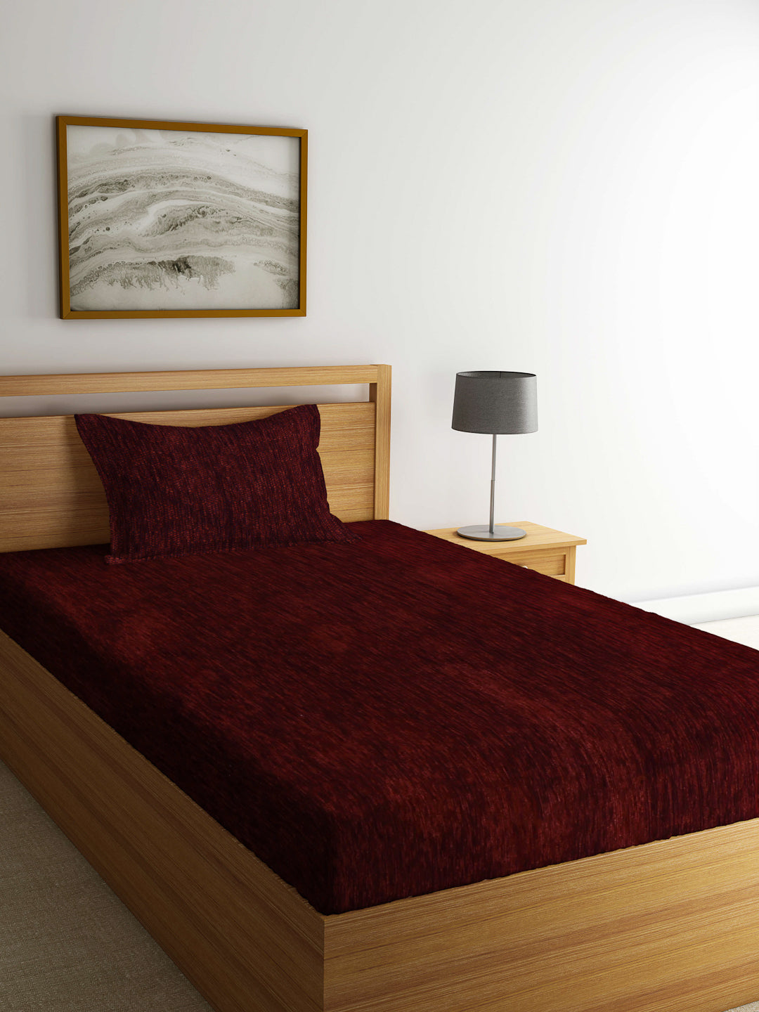 Arrabi Brown Solid Cotton Blend Chenille Single Size Bedsheet with 1 Pillow Cover (225 x 150 cm)