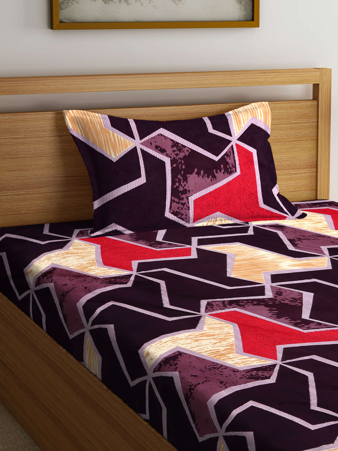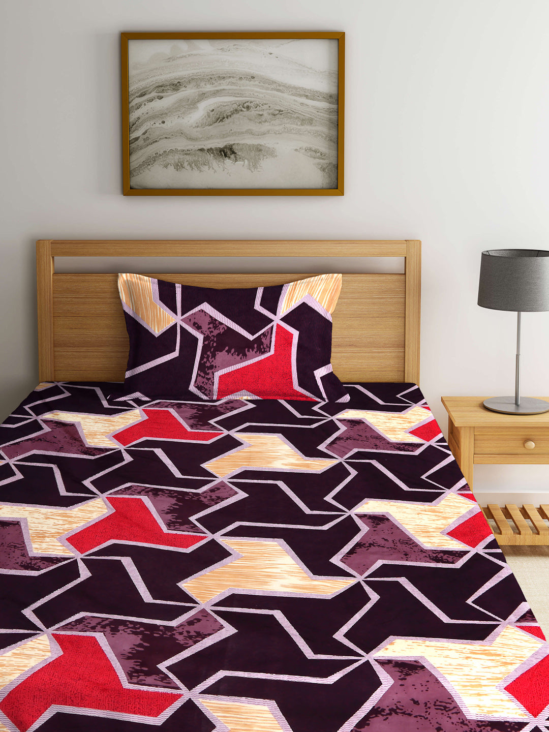 Arrabi Brown Graphic TC Cotton Blend Single Size Bedsheet with 1 Pillow Cover ( 220 X 150 cm)