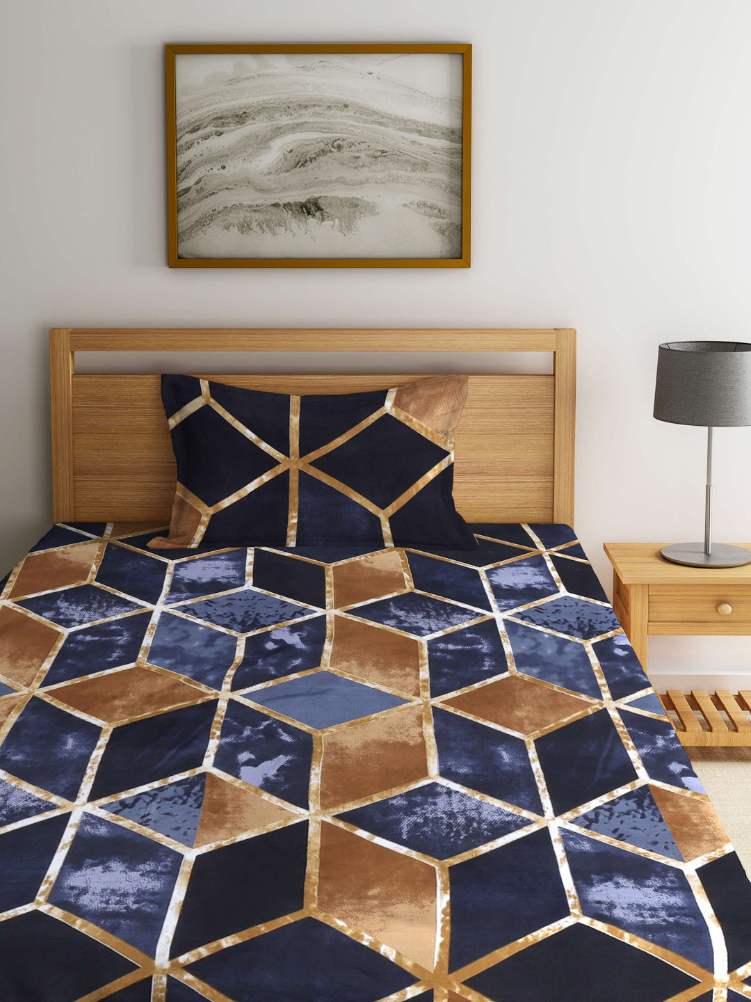 Arrabi Brown Graphic TC Cotton Blend Single Size Bedsheet with 1 Pillow Cover ( 220 X 150 cm)