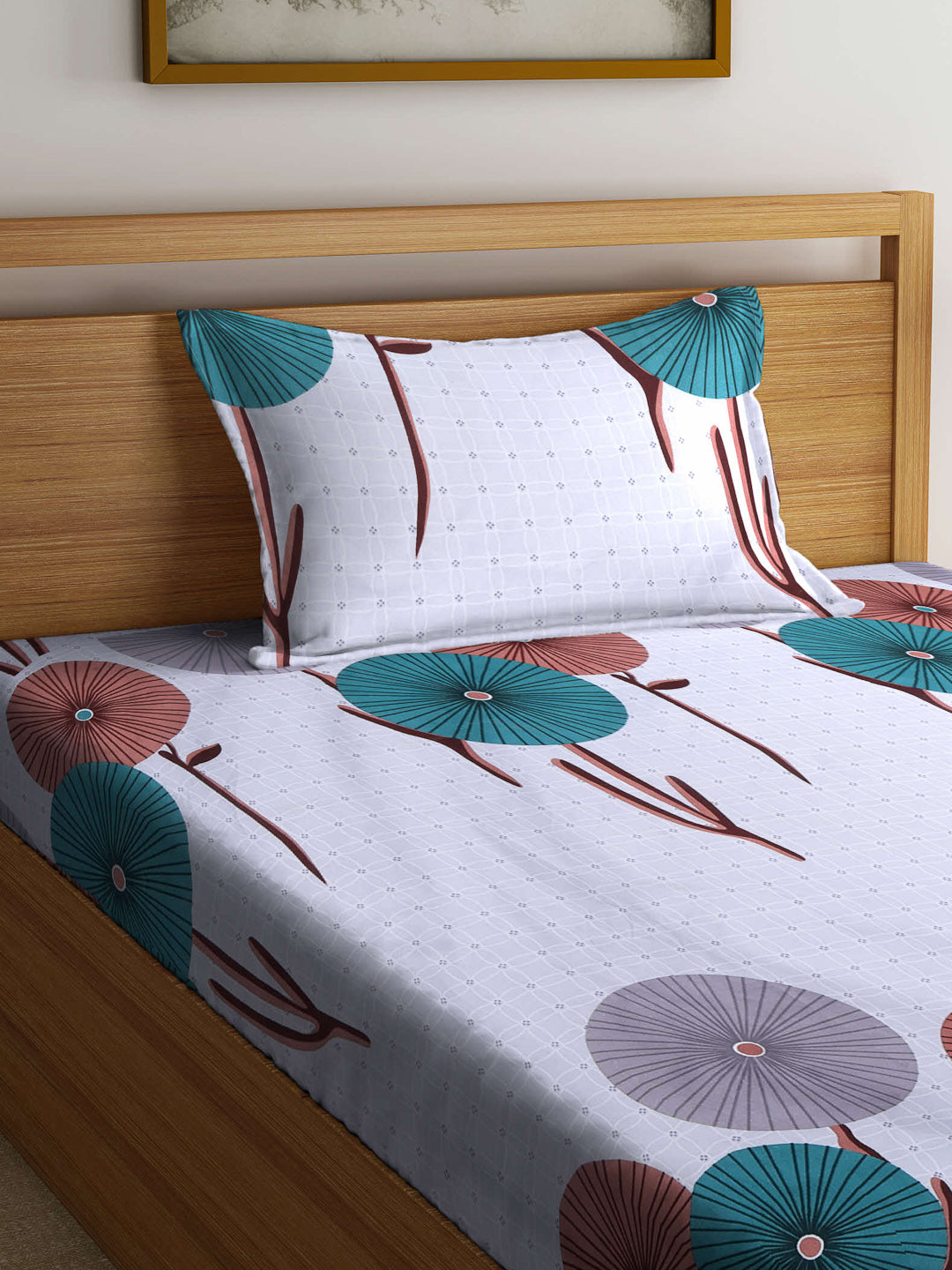 Arrabi Grey Indian TC Cotton Blend Single Size Bedsheet with 1 Pillow Cover ( 220 X 150 cm)