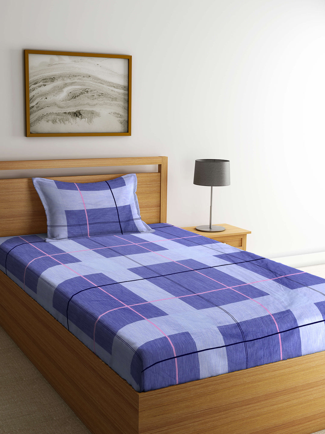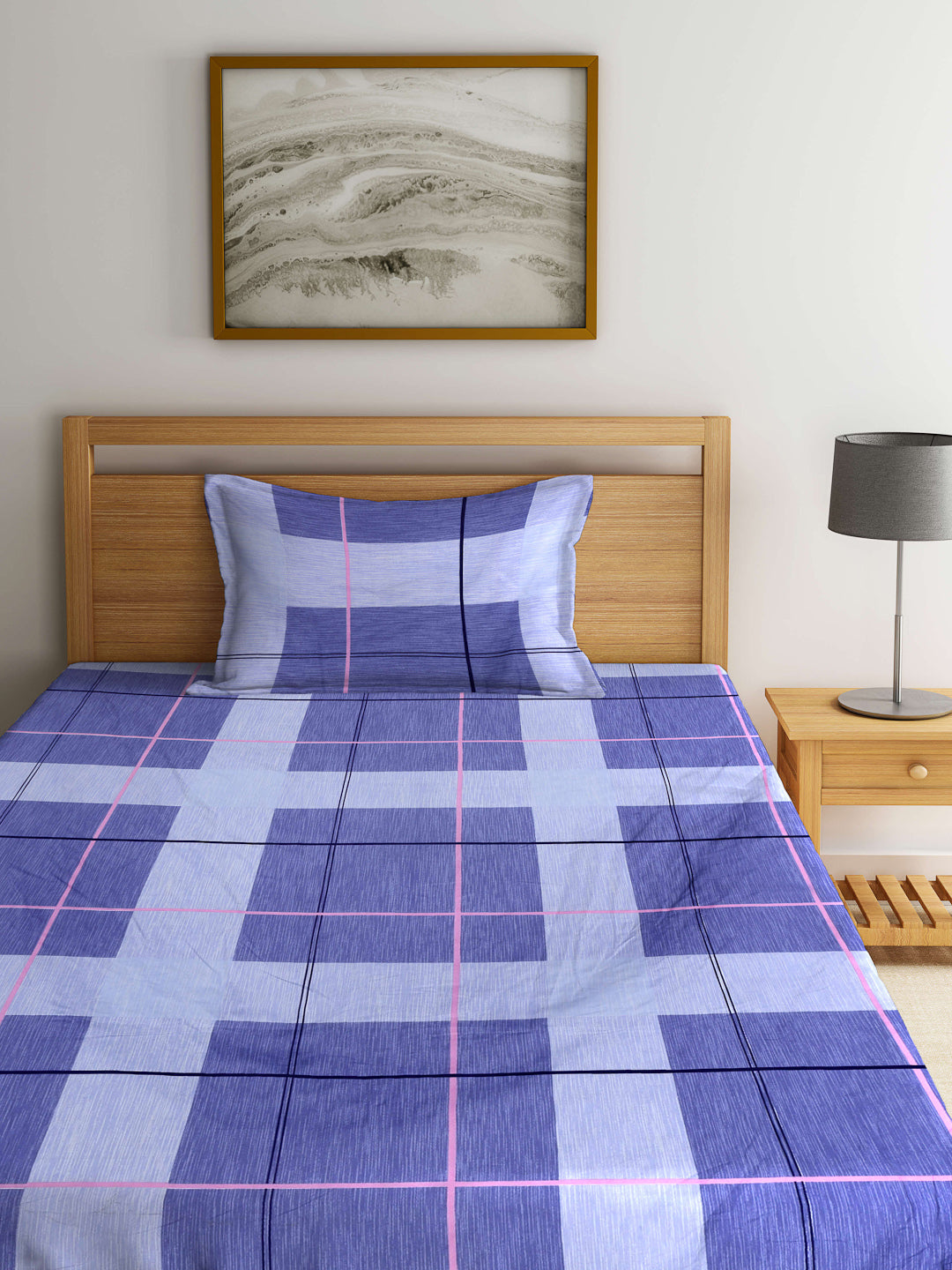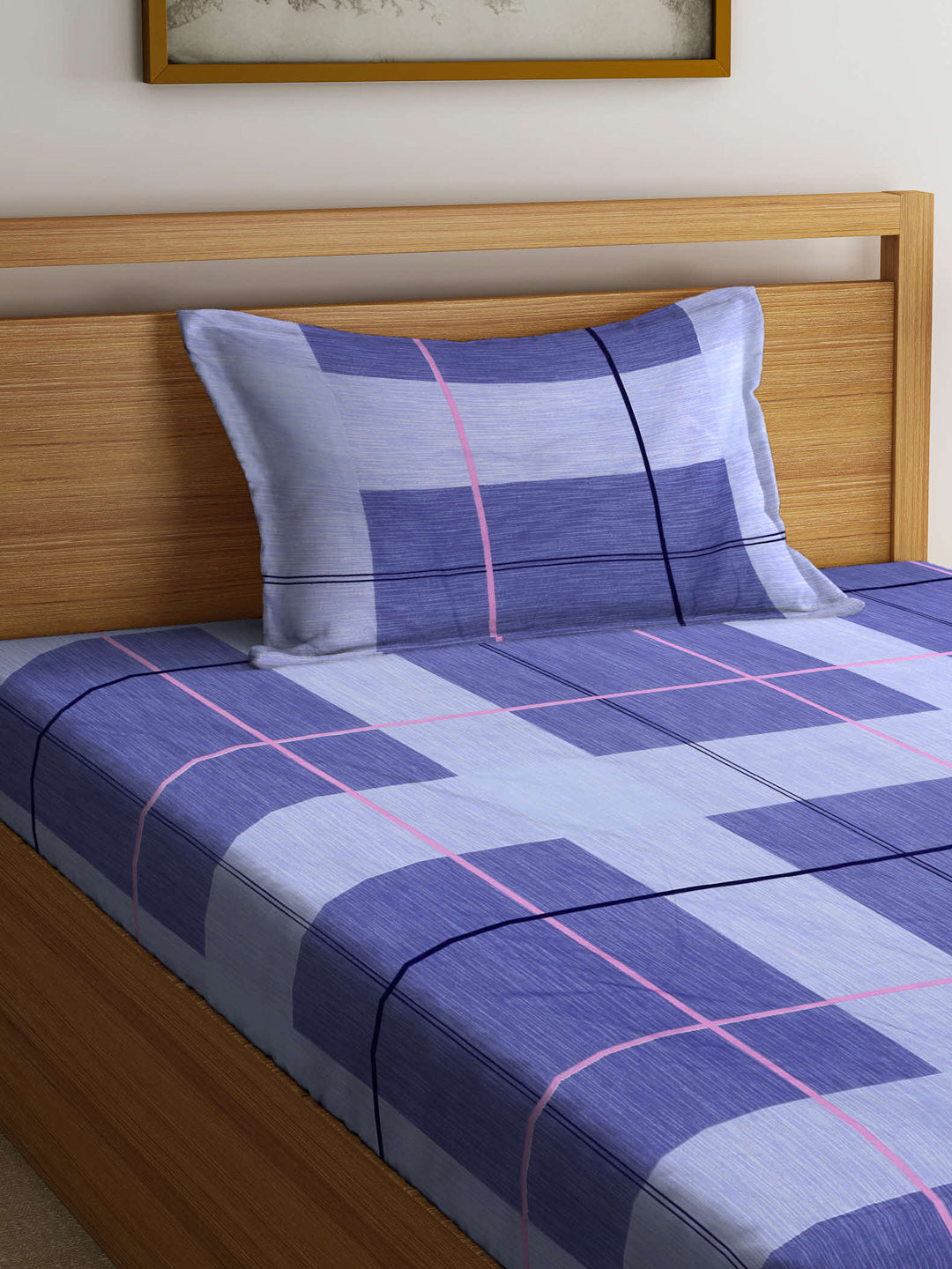 Arrabi Blue Geometric TC Cotton Blend Single Size Bedsheet with 1 Pillow Cover (215 x 150 cm)