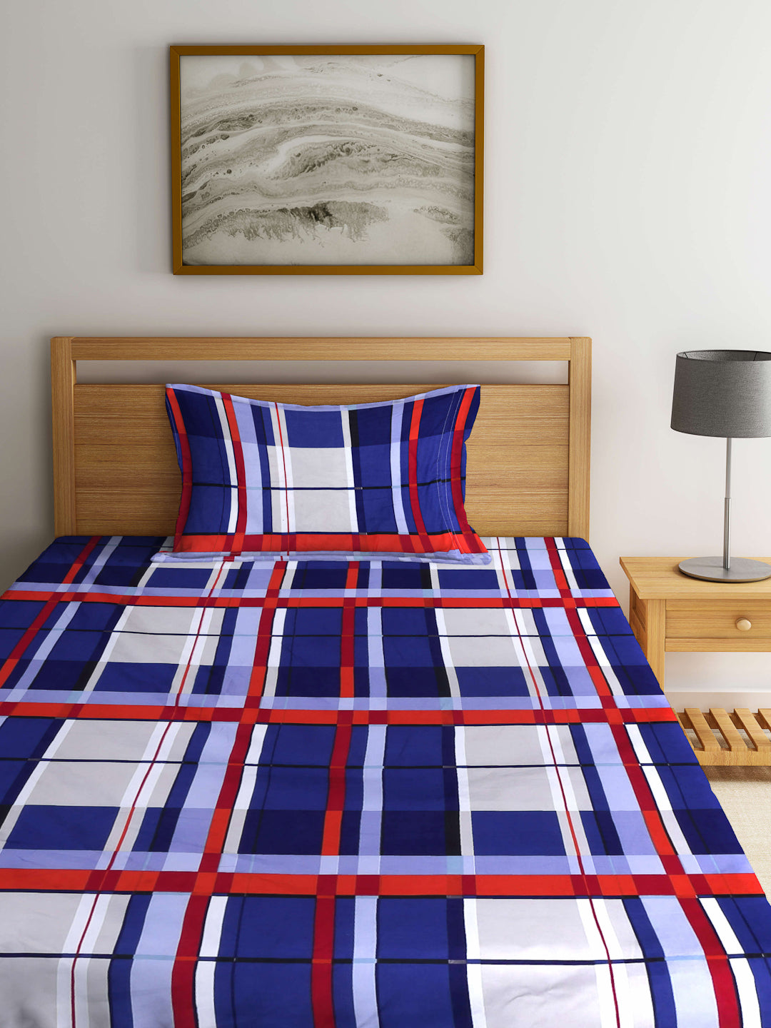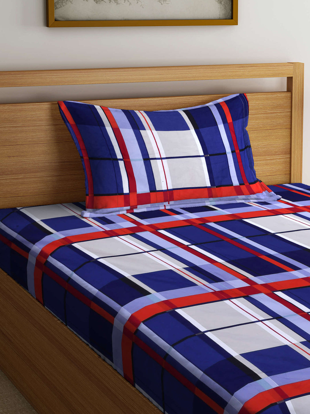 Arrabi Blue Geometric TC Cotton Blend Single Size Bedsheet with 1 Pillow Cover (215 x 150 cm)