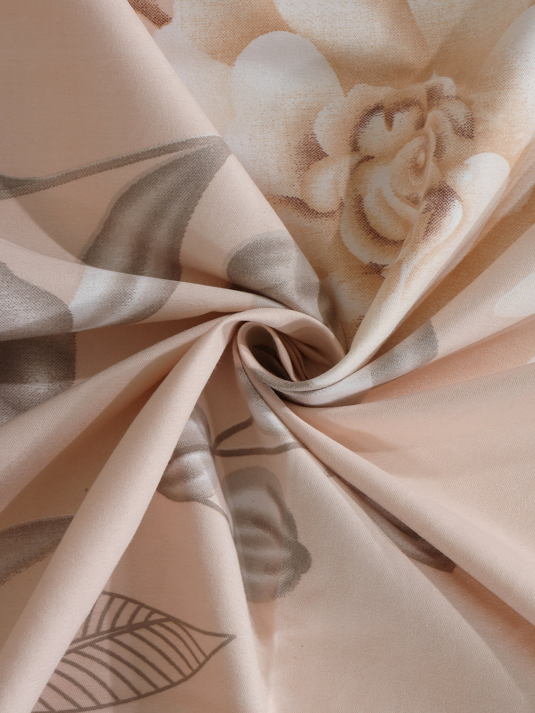 Arrabi Beige Floral TC Cotton Blend Single Size Bedsheet with 1 Pillow Cover (215 x 150 cm)