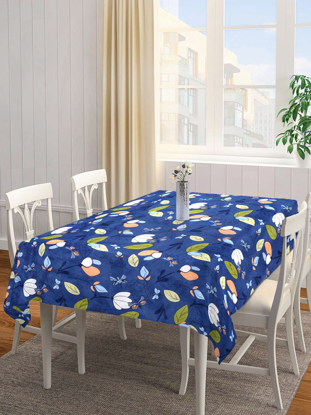 Arrabi Blue Leaf Cotton Blend 6 SEATER Table Cover (180 X 130 cm)