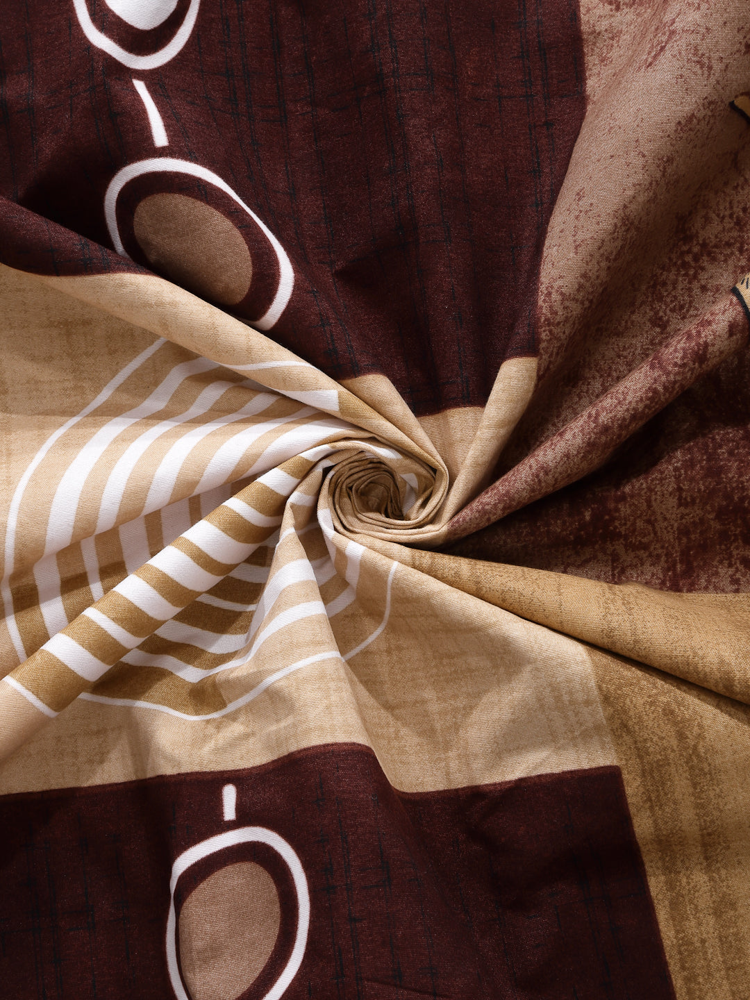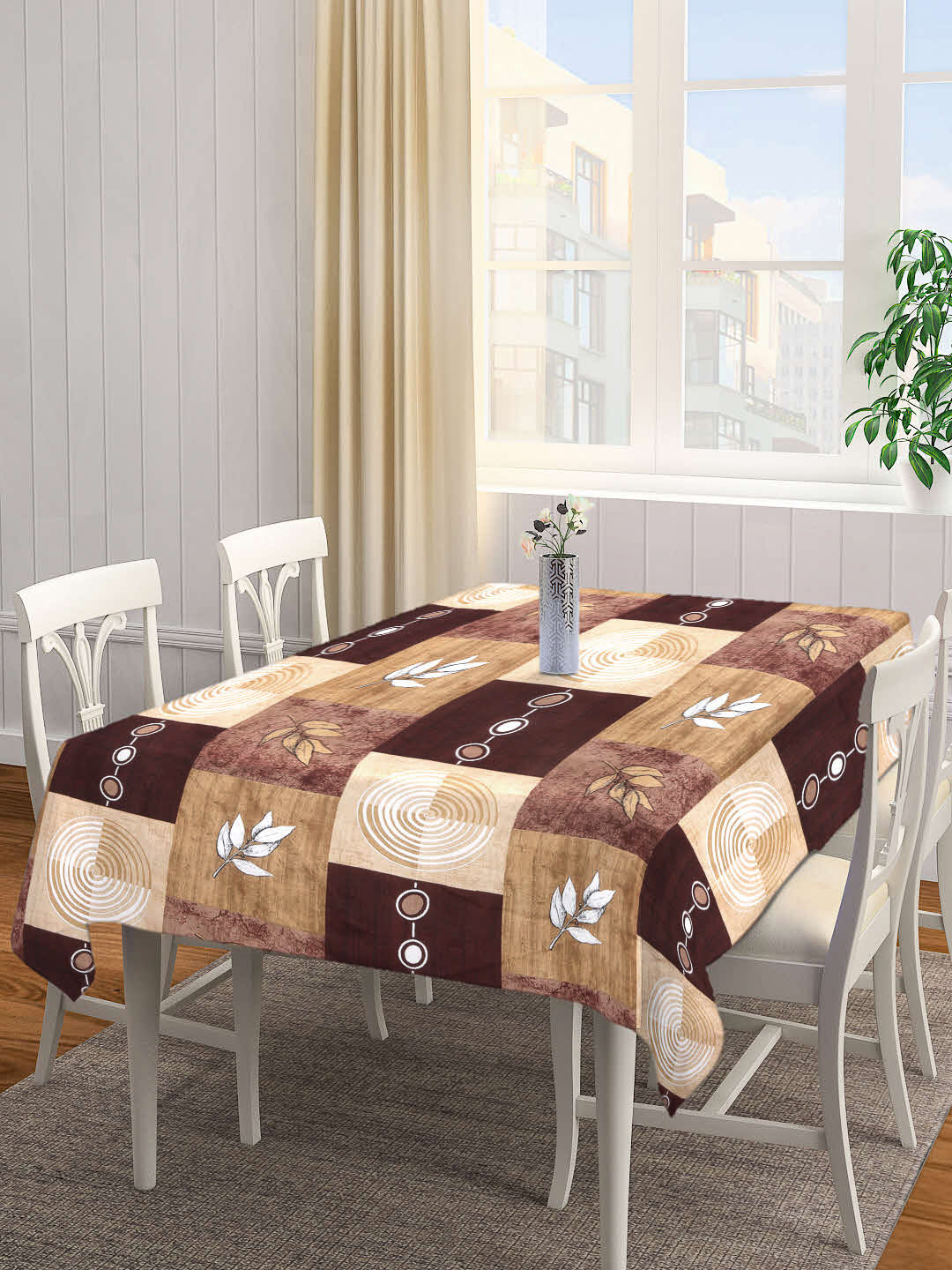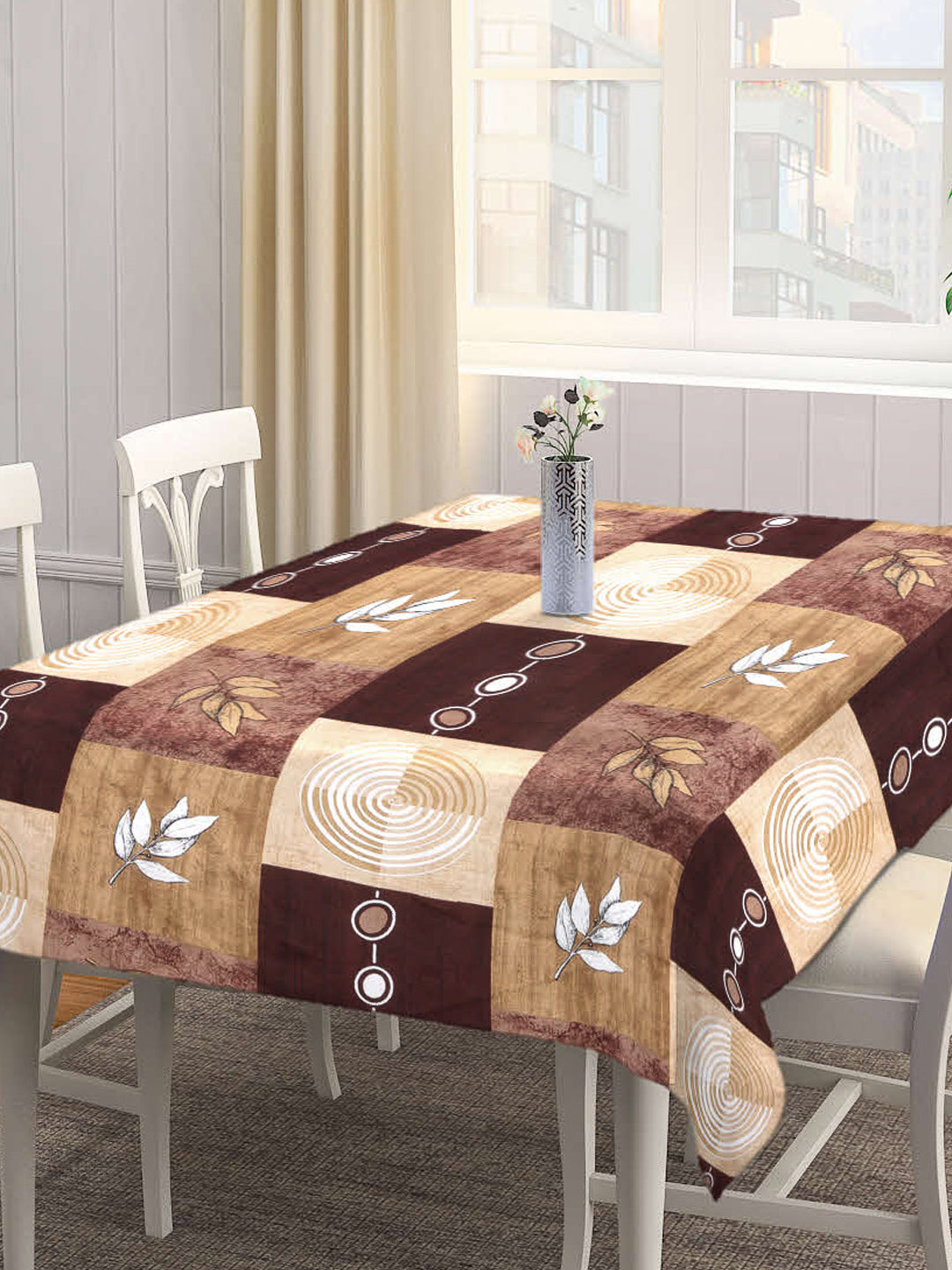 Arrabi Brown Geometric Cotton Blend 6 SEATER Table Cover (180 X 130 cm)
