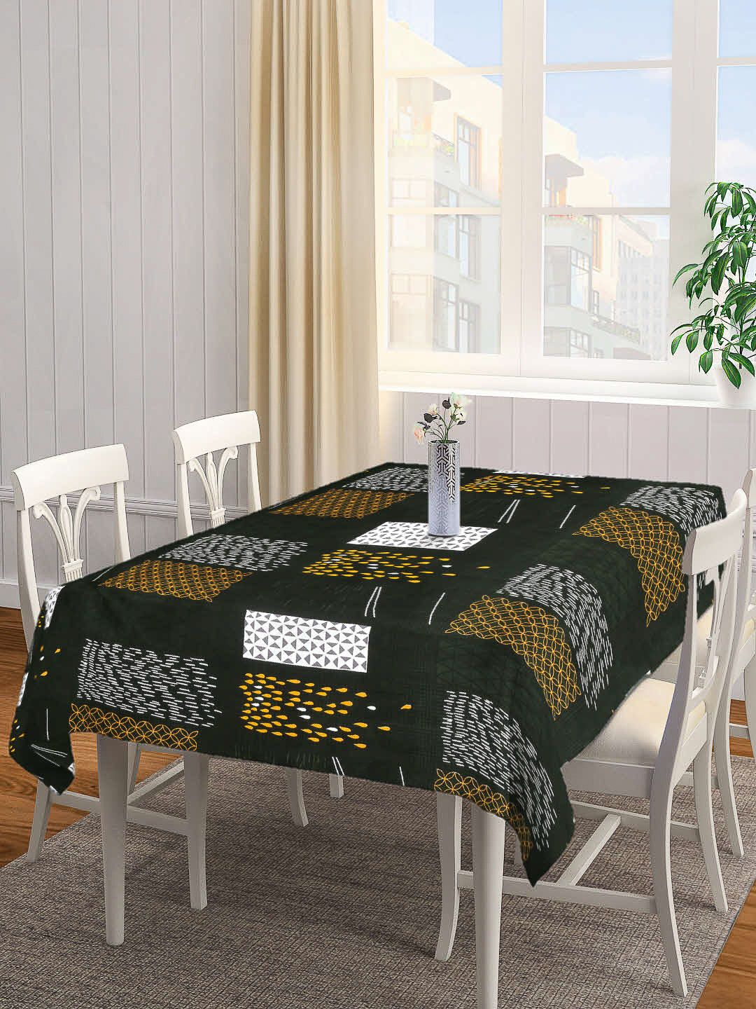 Arrabi Green Geometric Cotton Blend 8 SEATER Table Cover (215 X 150 cm)