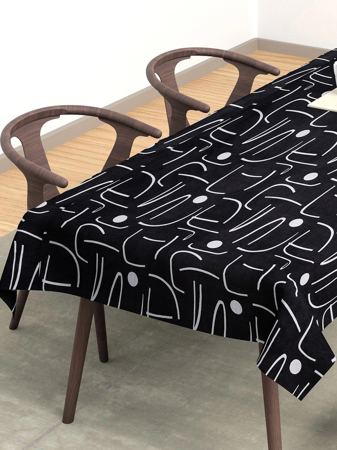Arrabi Black Geometric Cotton Blend 6 SEATER Table Cover (180 x 130 cm)