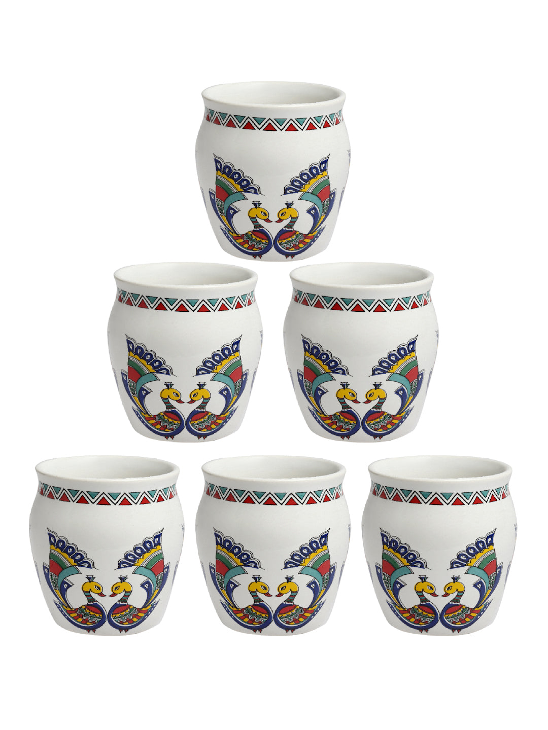 Arrabi Multi Ceramic Peacock Kullar set (Set of 6)