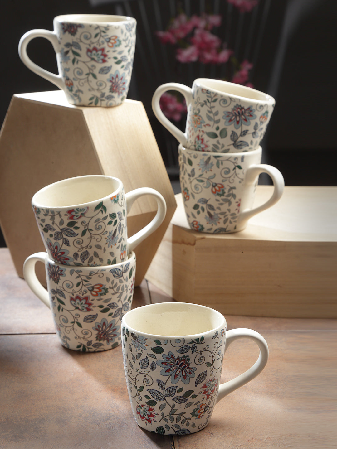 Handcrafted Printed Stoneware Matte Floral Tea set (Set of 6)