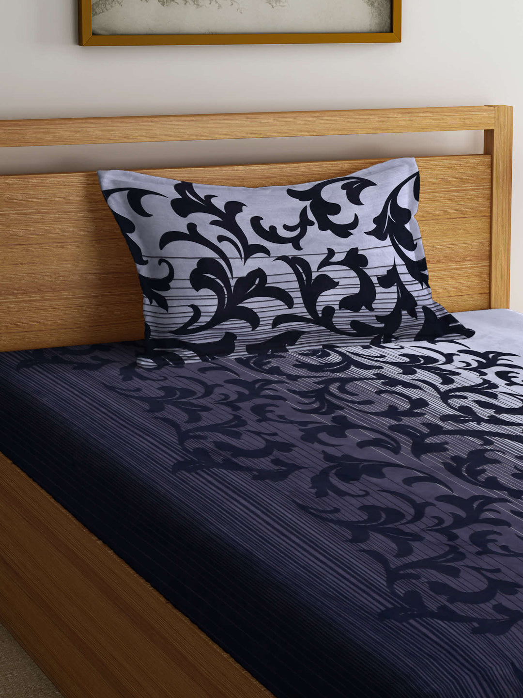 Arrabi Black Indian TC Cotton Blend Single Size Fitted Bedsheet with 1 Pillow Cover (215 X 150 cm)