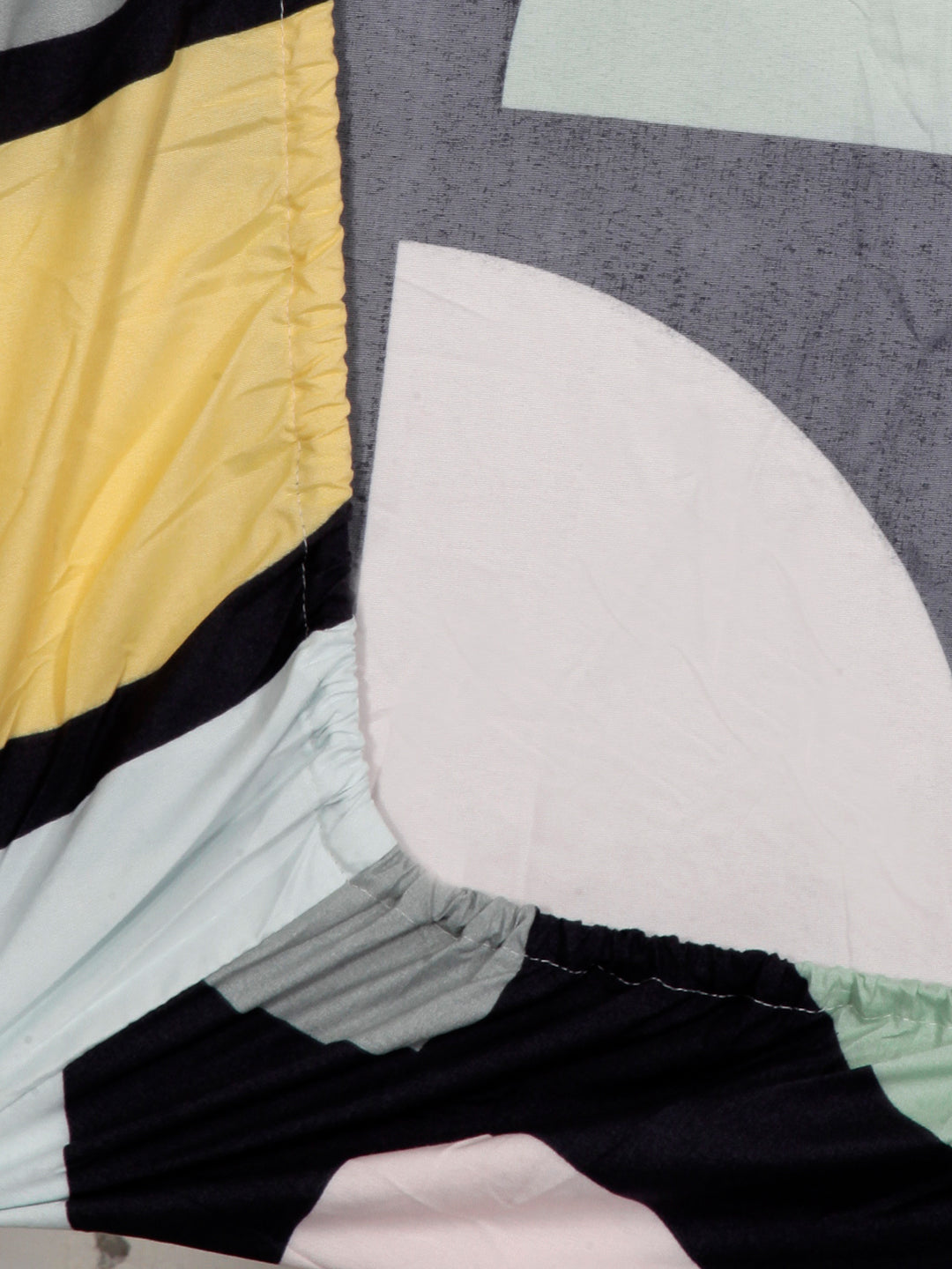 Arrabi Multi Geometric TC Cotton Blend Single Size Fitted Bedsheet with 1 Pillow Cover (215 X 150 cm)