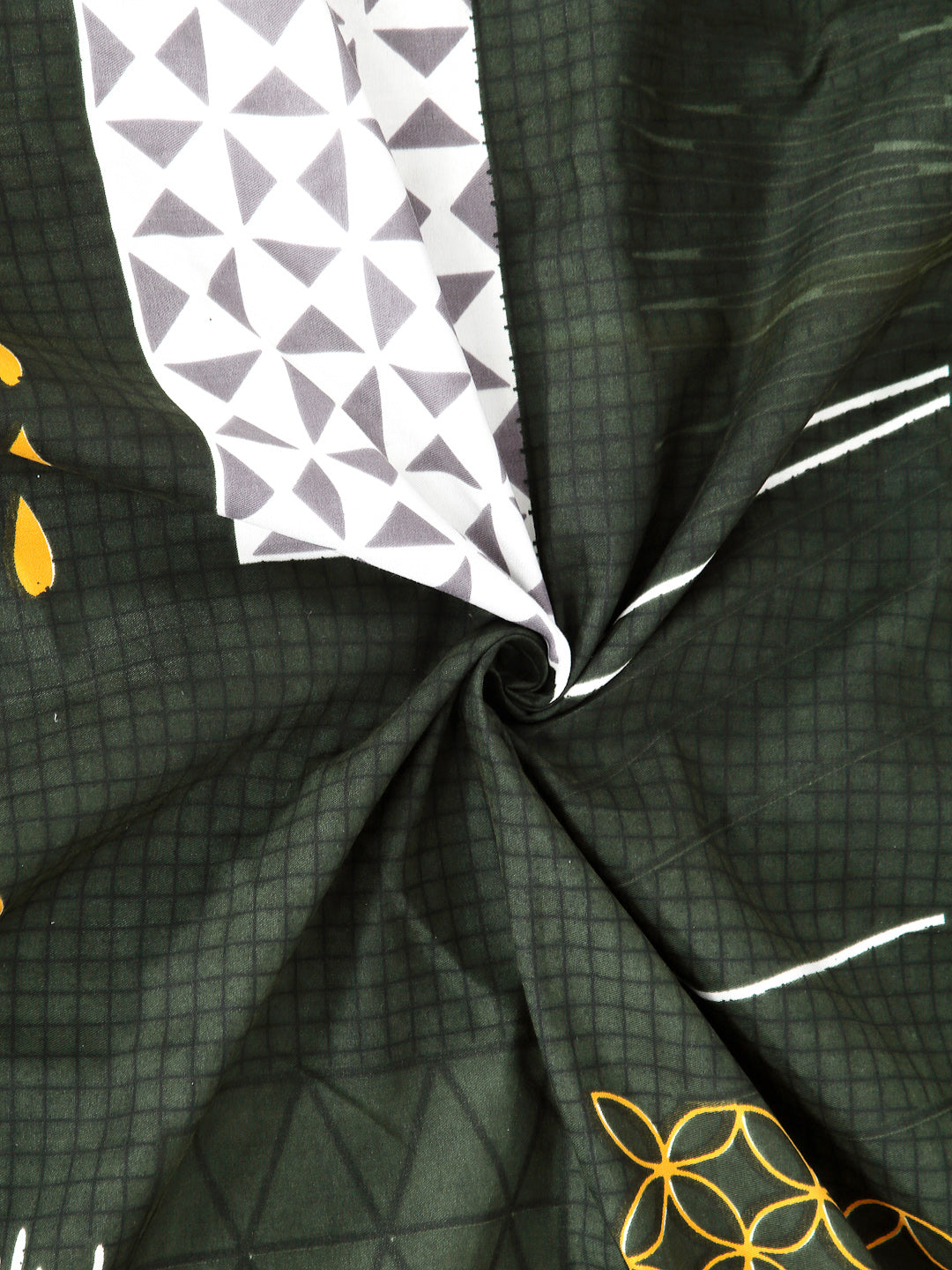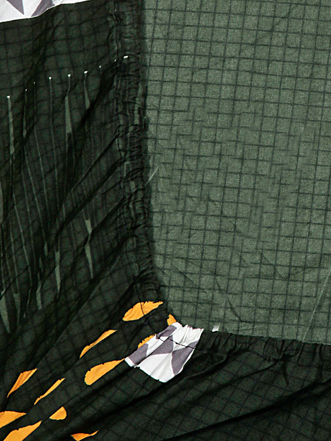 Arrabi Green Geometric TC Cotton Blend Single Size Fitted Bedsheet with 1 Pillow Cover (215 X 150 cm)