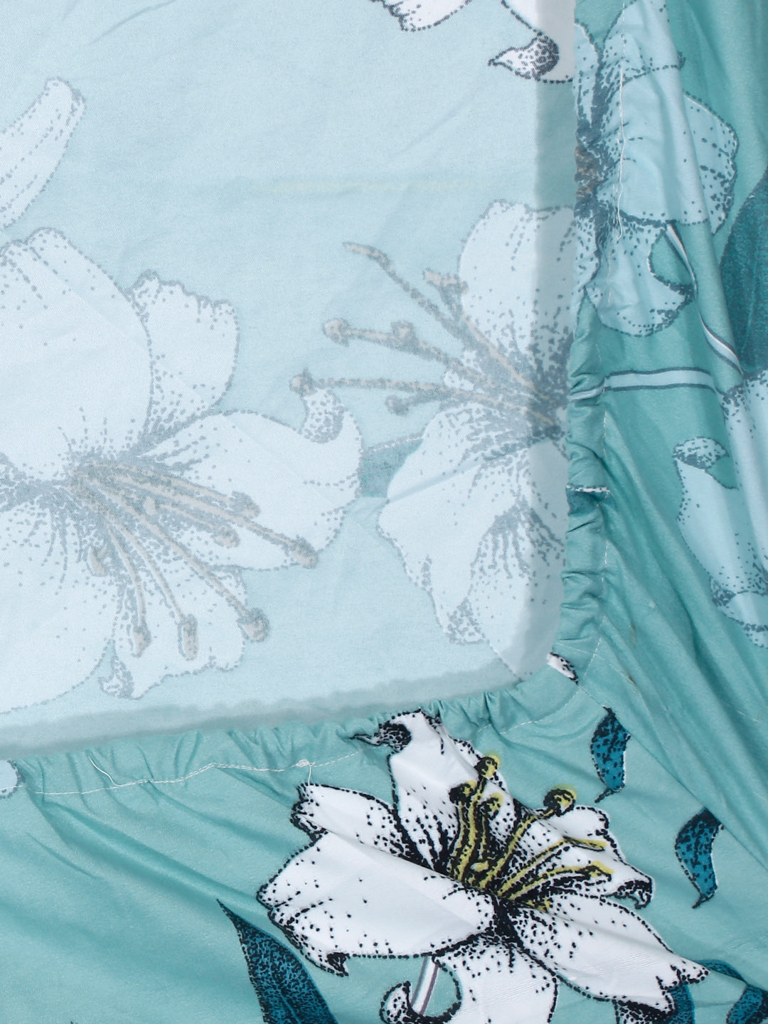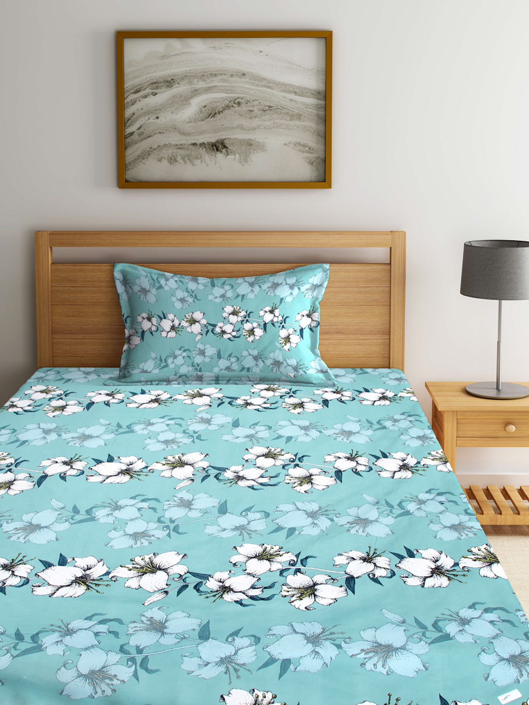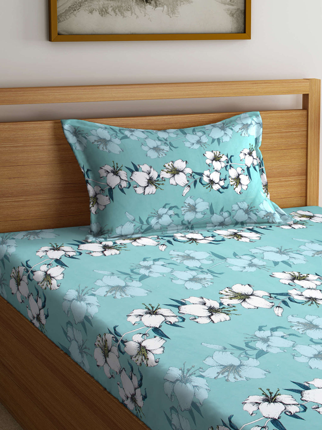 Arrabi Green Floral TC Cotton Blend Single Size Fitted Bedsheet with 1 Pillow Cover (215 X 150 cm)