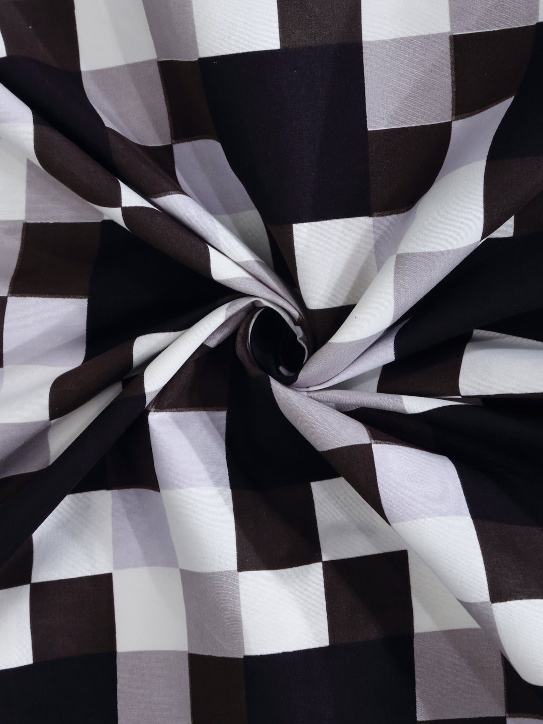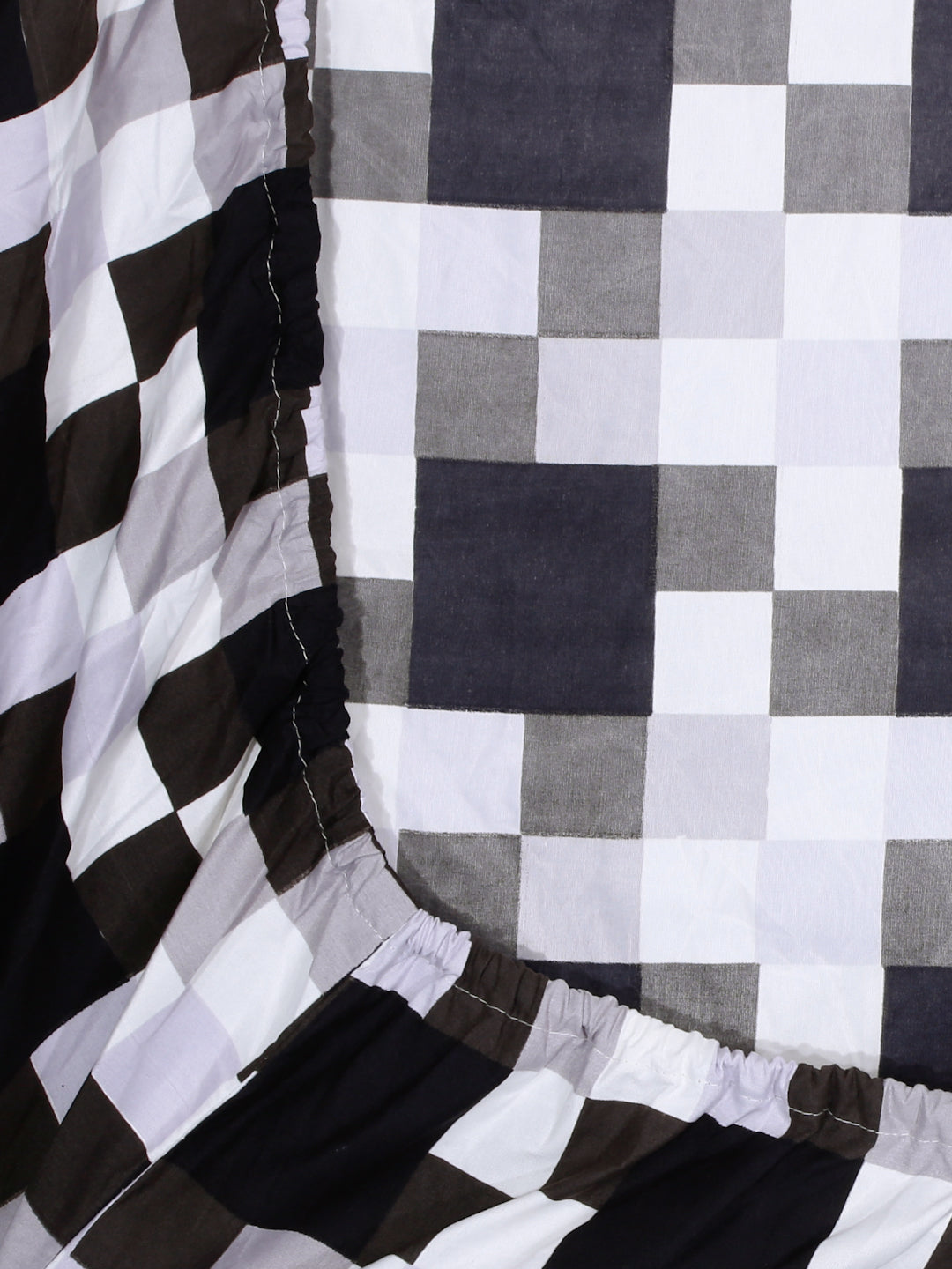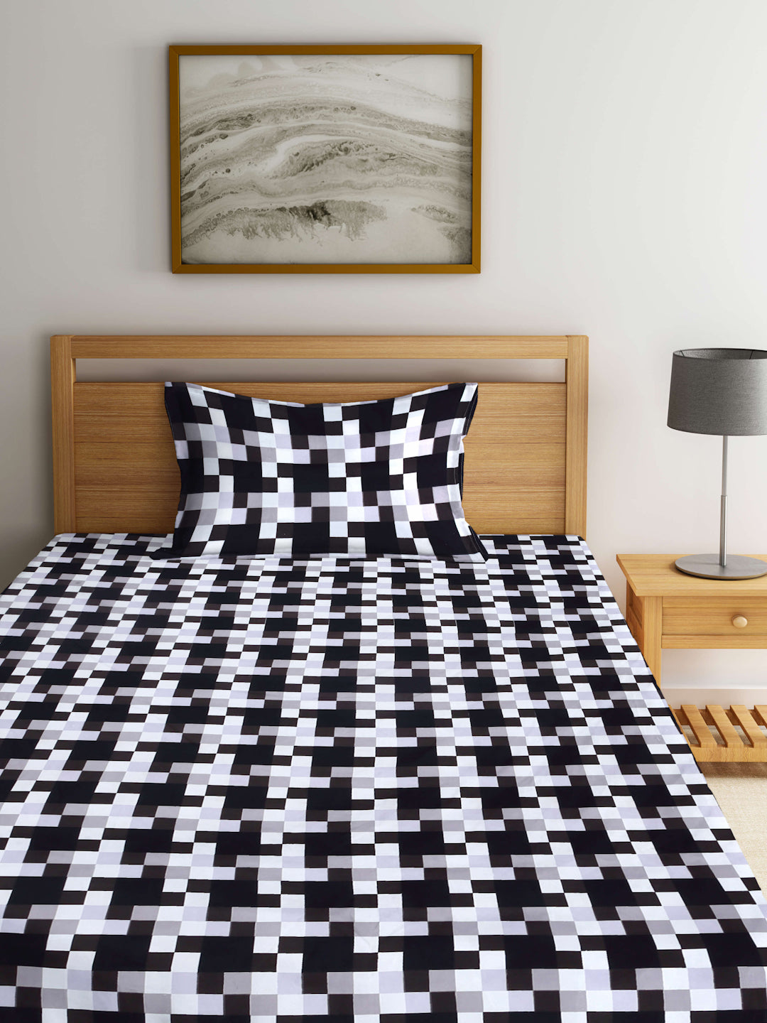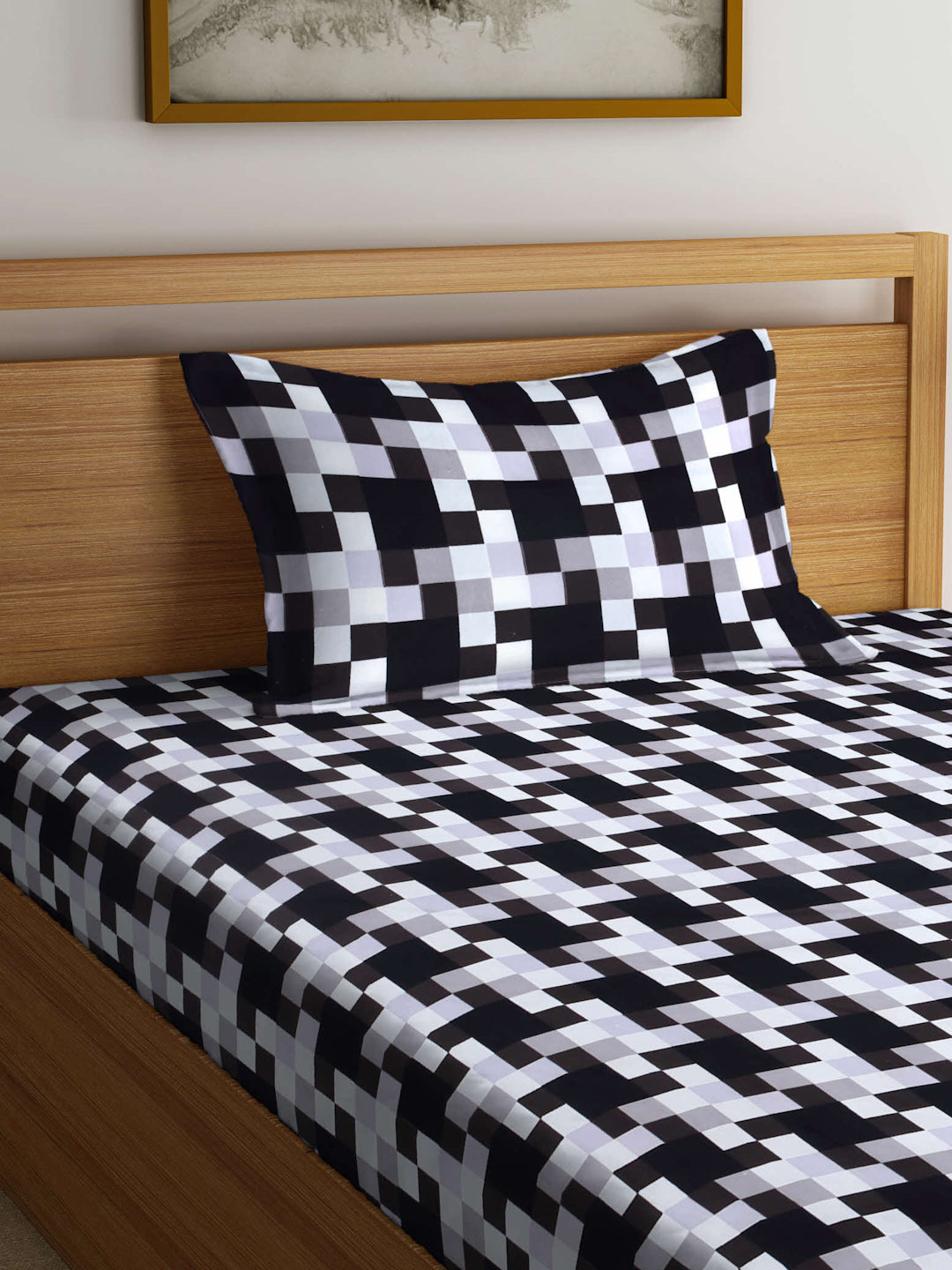 Arrabi Black Geometric TC Cotton Blend Single Size Fitted Bedsheet with 1 Pillow Cover (215 X 150 cm)