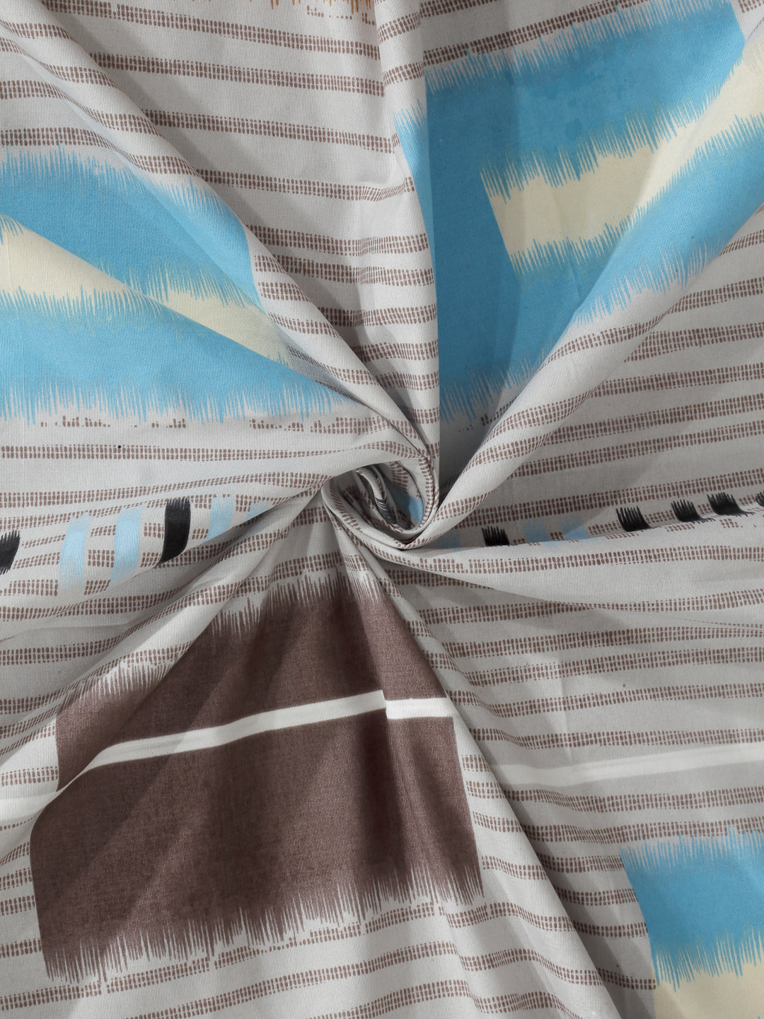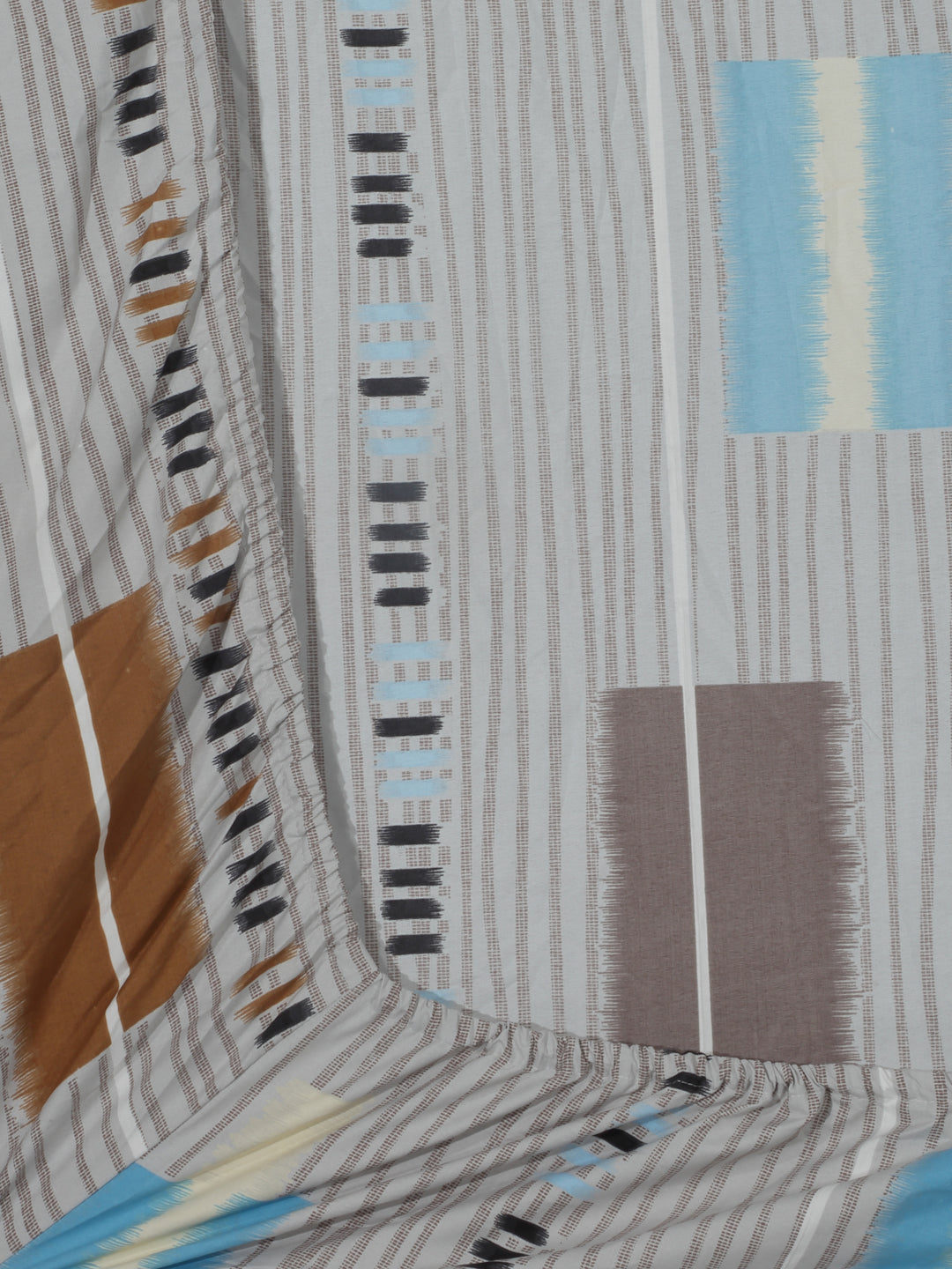 Arrabi Multi Geometric TC Cotton Blend Single Size Fitted Bedsheet with 1 Pillow Cover (215 x 150 cm)