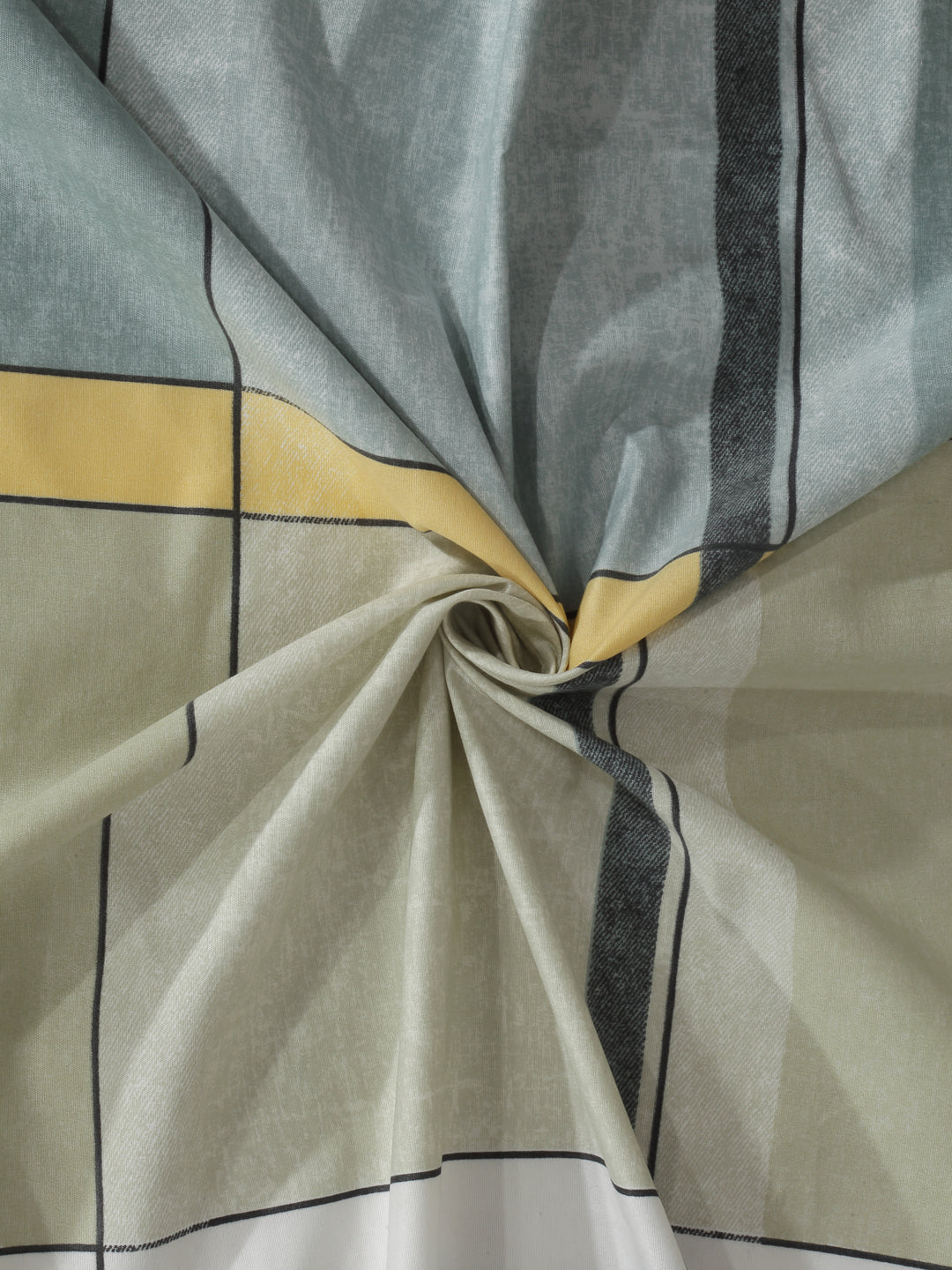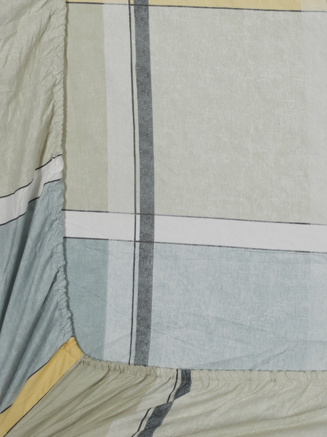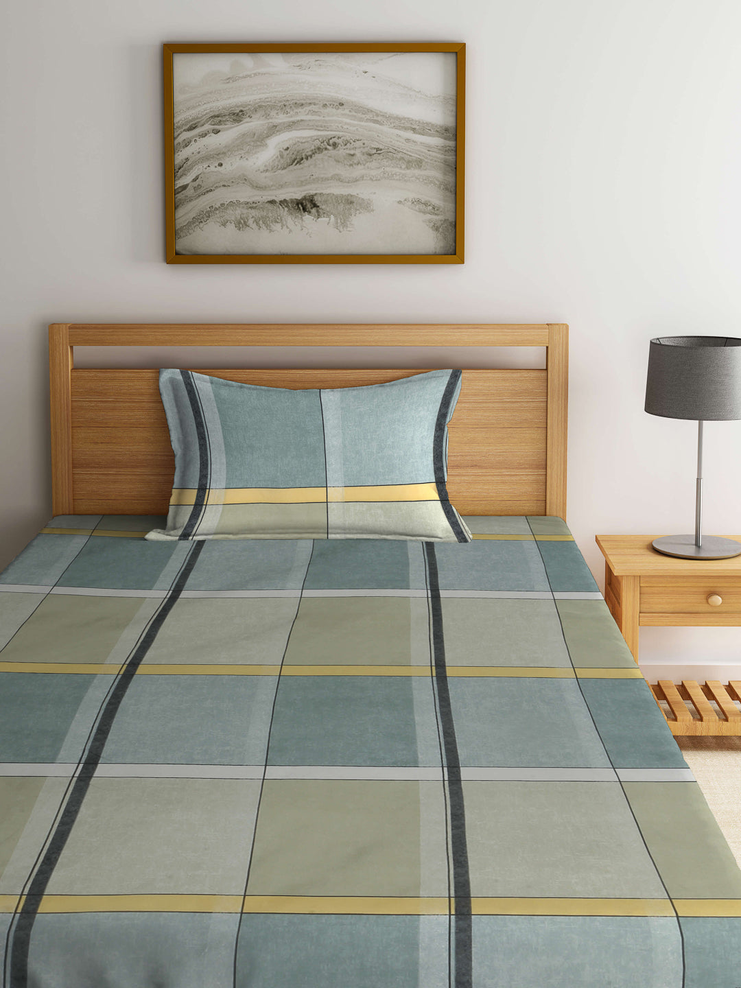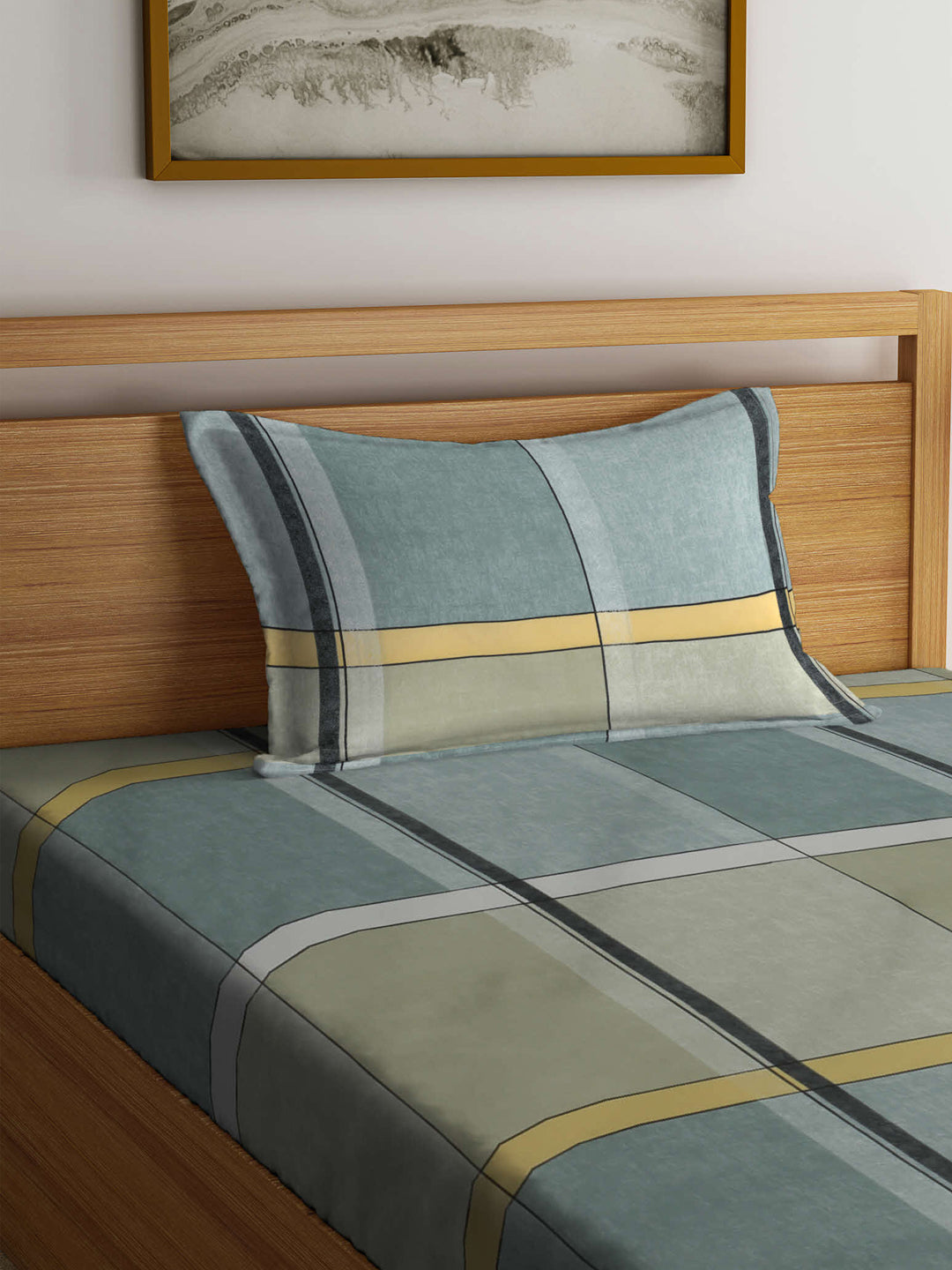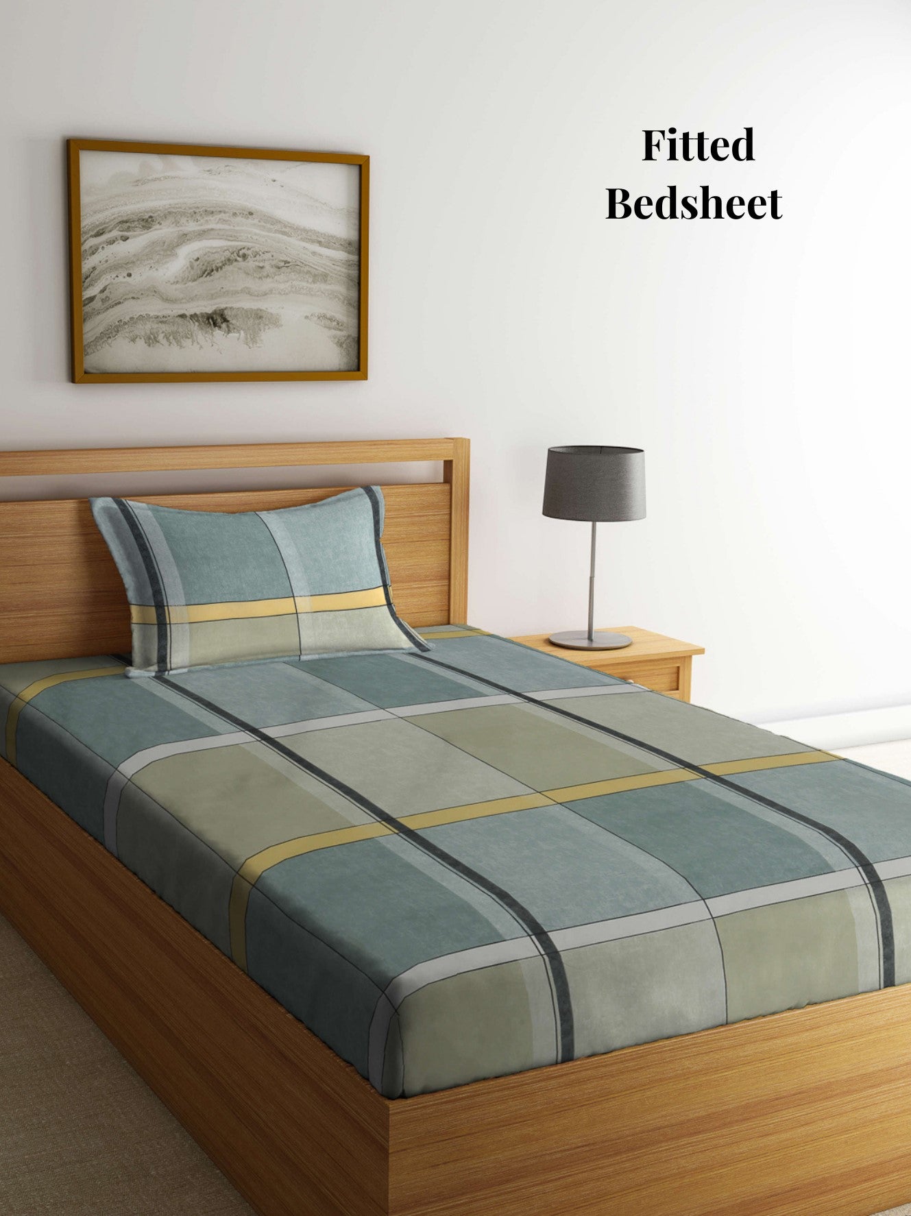 Arrabi Green Geometric TC Cotton Blend Single Size Fitted Bedsheet with 1 Pillow Cover (215 x 150 cm)