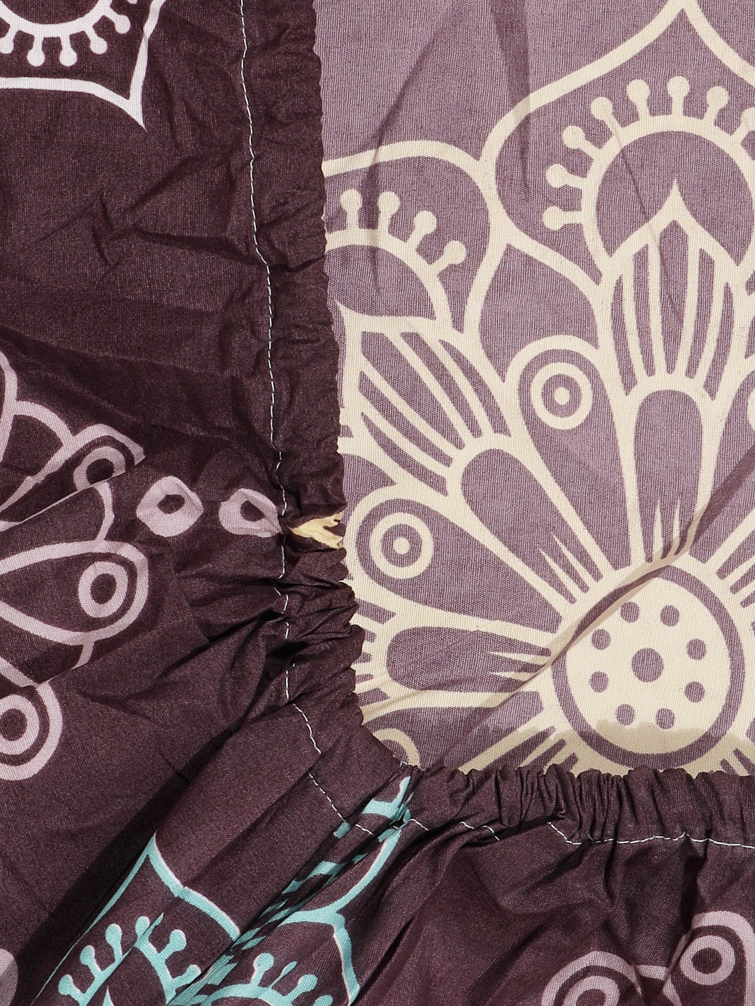 Arrabi Violet Floral TC Cotton Blend Single Size Fitted Bedsheet with 1 Pillow Cover (215 x 150 cm)