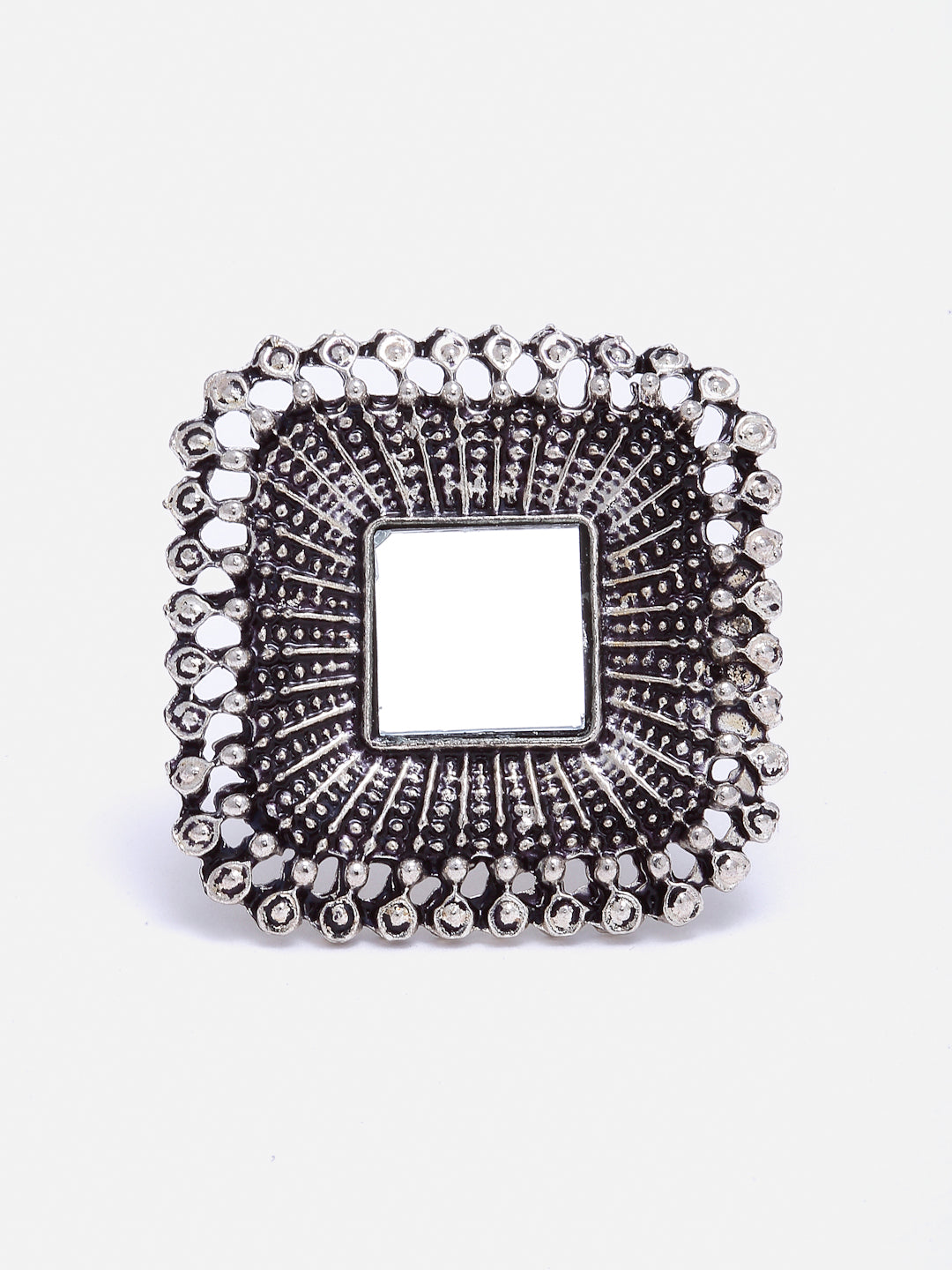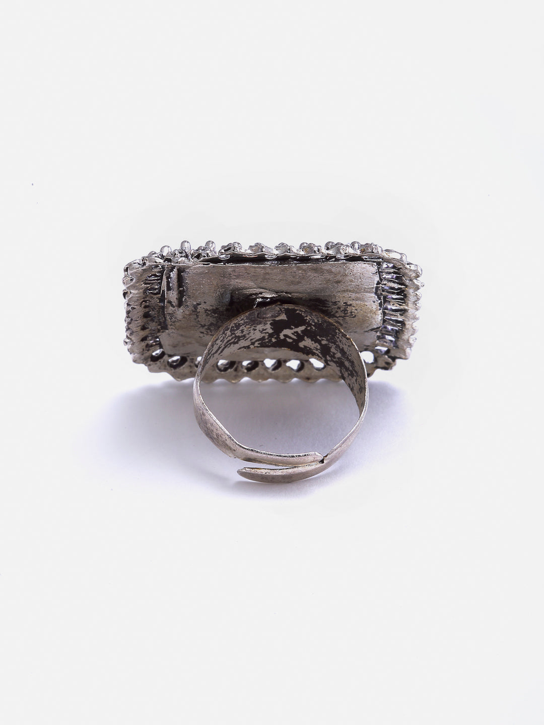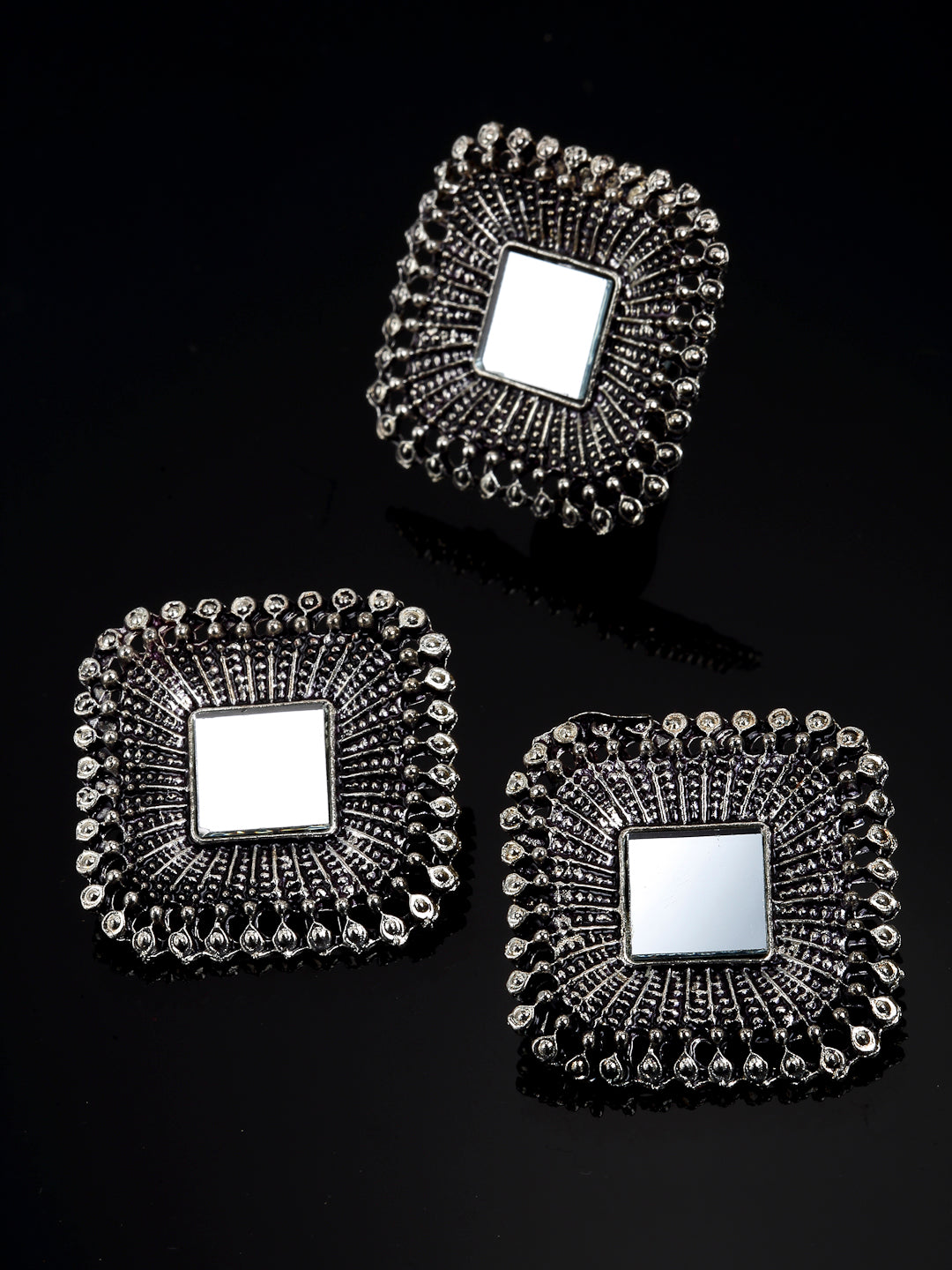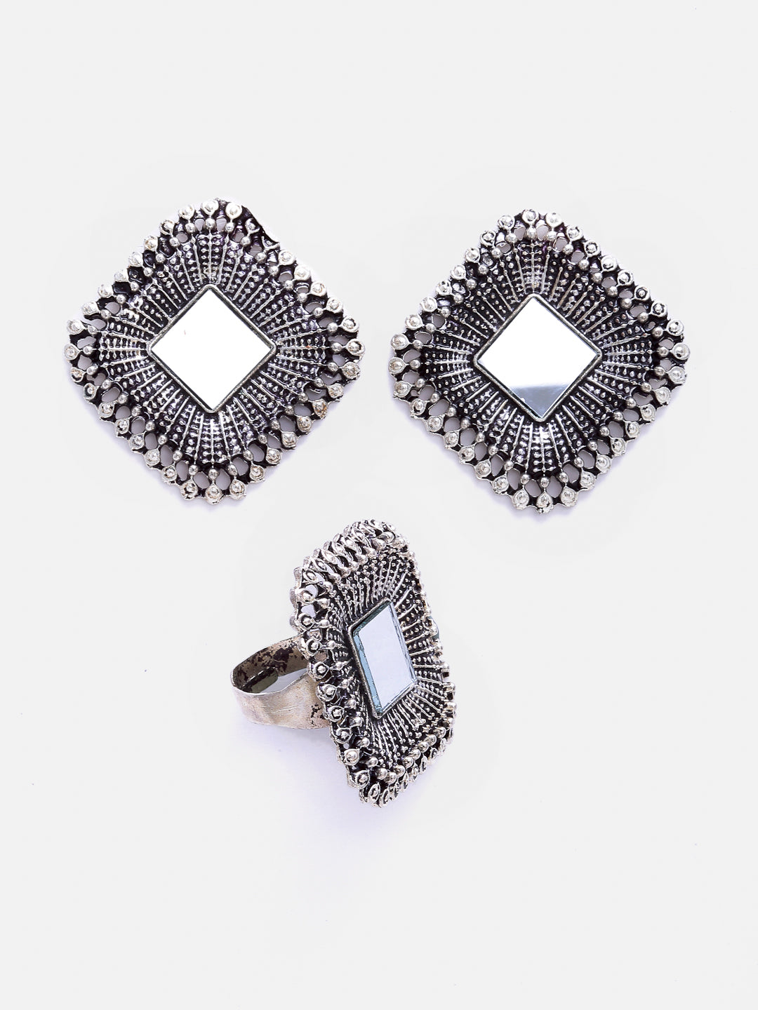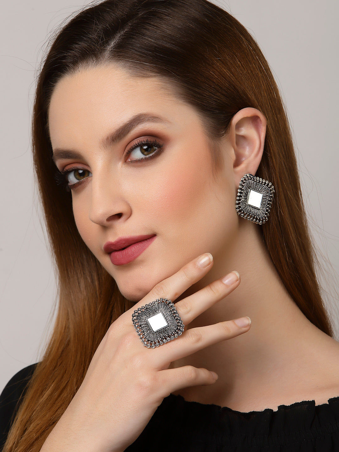 Arrabi Metallic Oxidised Earrings (Set of 2) and 1 Ring (10 cm)